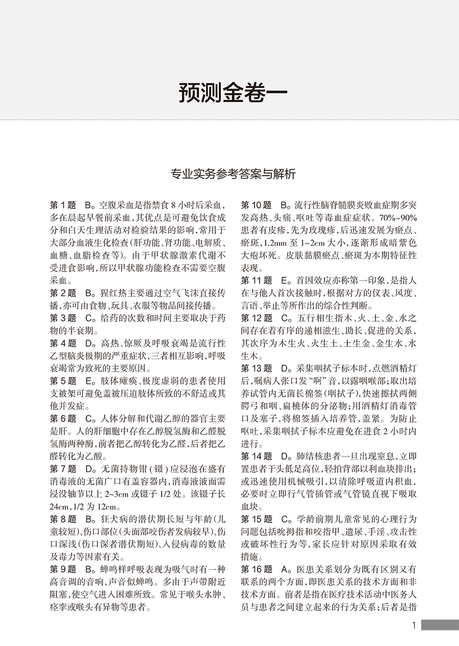 本书包含4套试卷及答案,本着“用习题来弥补临床实践的不足”的原则,按照真实考试时各命题模块的出题比例,选择能够具体体现护理实践的考题,用习题来帮助考生熟悉临床情境,让考生在实际考试遇到类似题目时不会感到陌生。 可以帮助考生提前了解机考试卷的真实情况,熟悉考试规则。此外,为弥补考生护理实践的不足,每套试卷中还配有视频题。所有线上内容均可通过扫描二维码获取。
