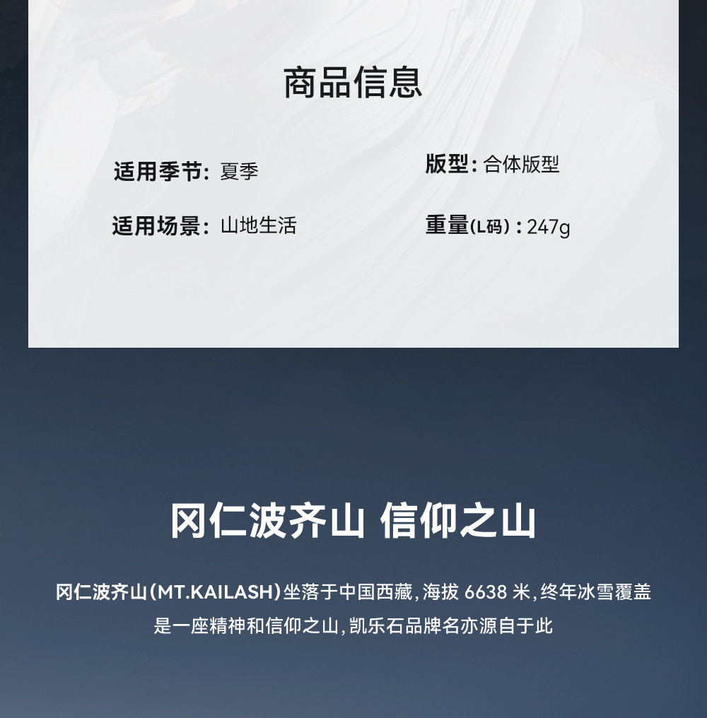 KAILAS凯乐石 中性款冈仁波齐山棉T KG2537141【Z】