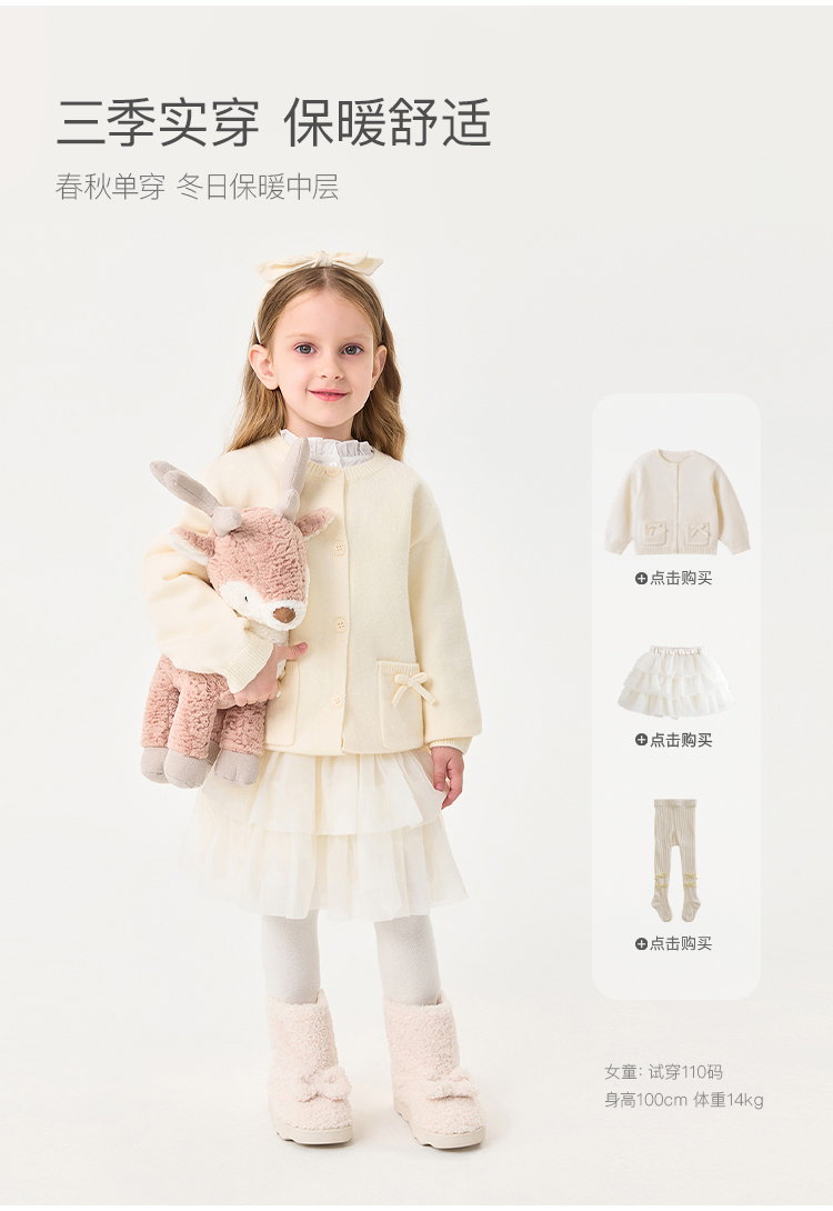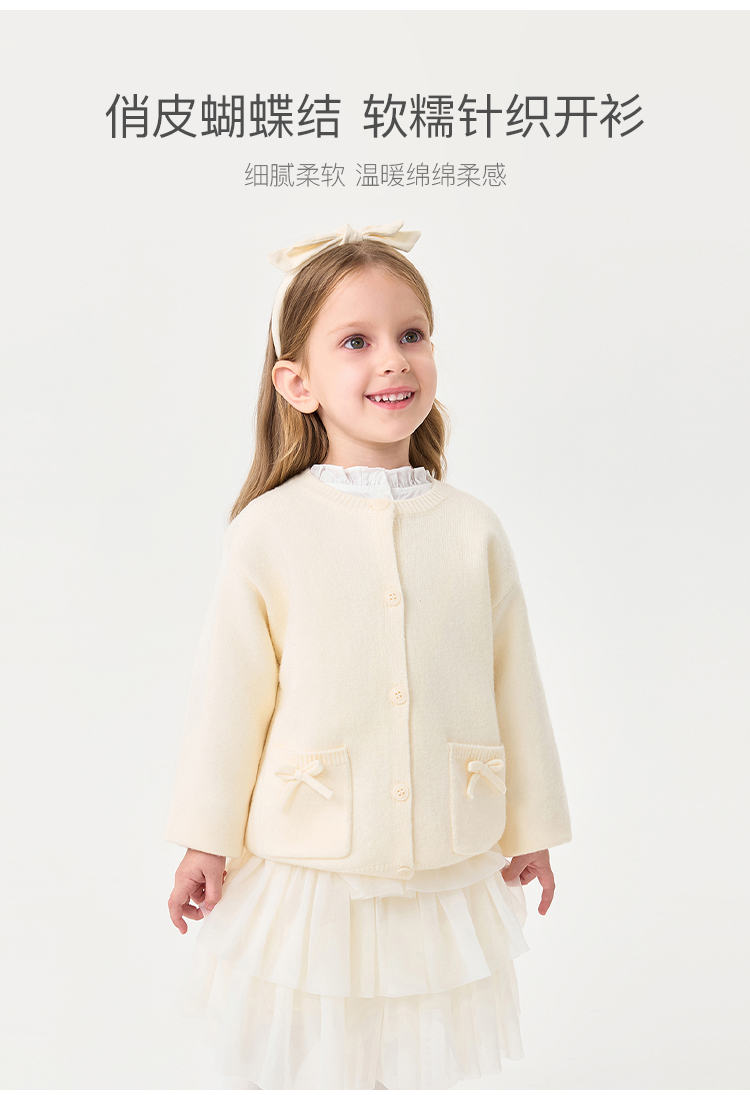 马克珍妮女童俏皮蝴蝶结软糯针织开衫2025年秋冬新款551865