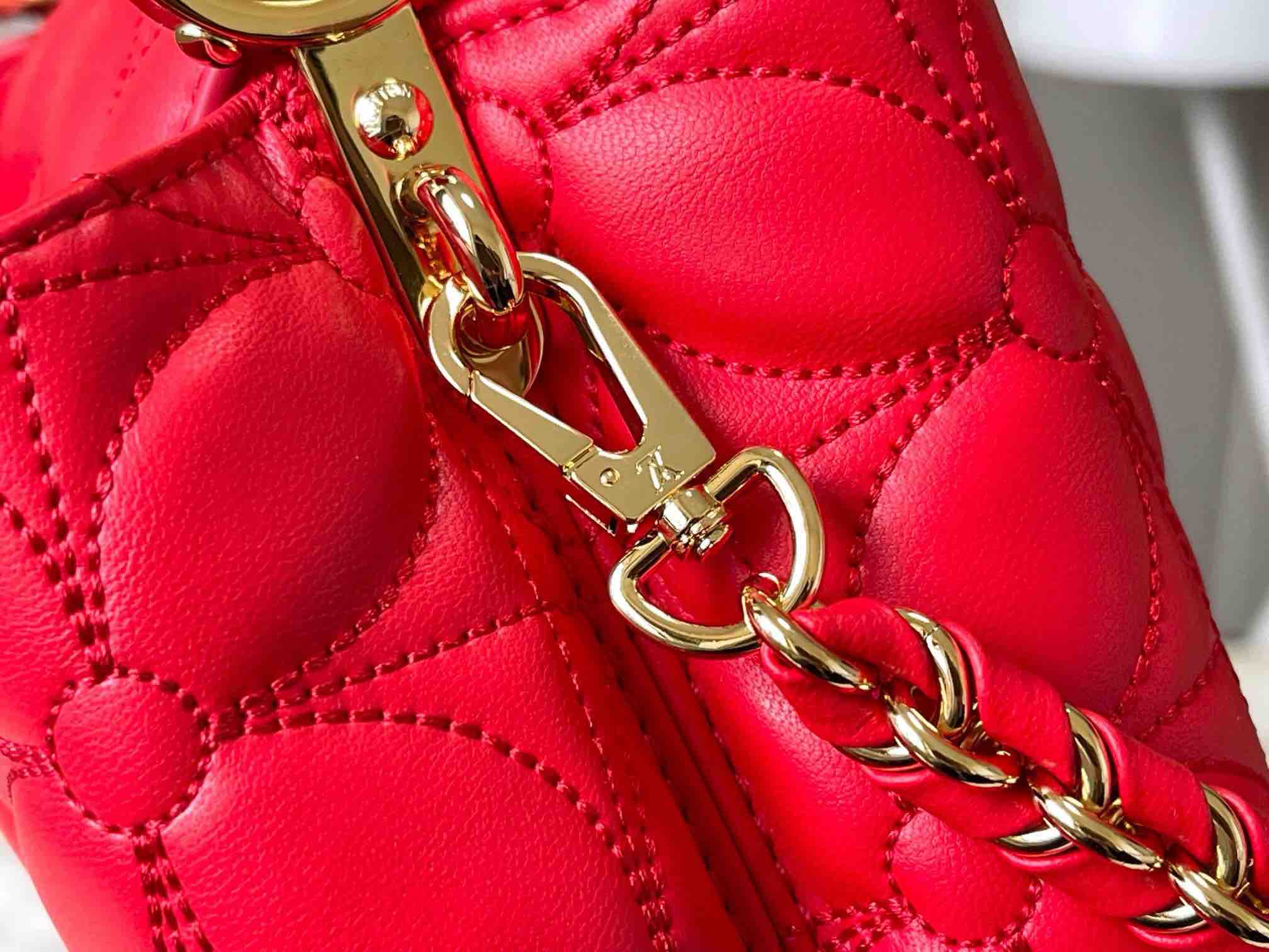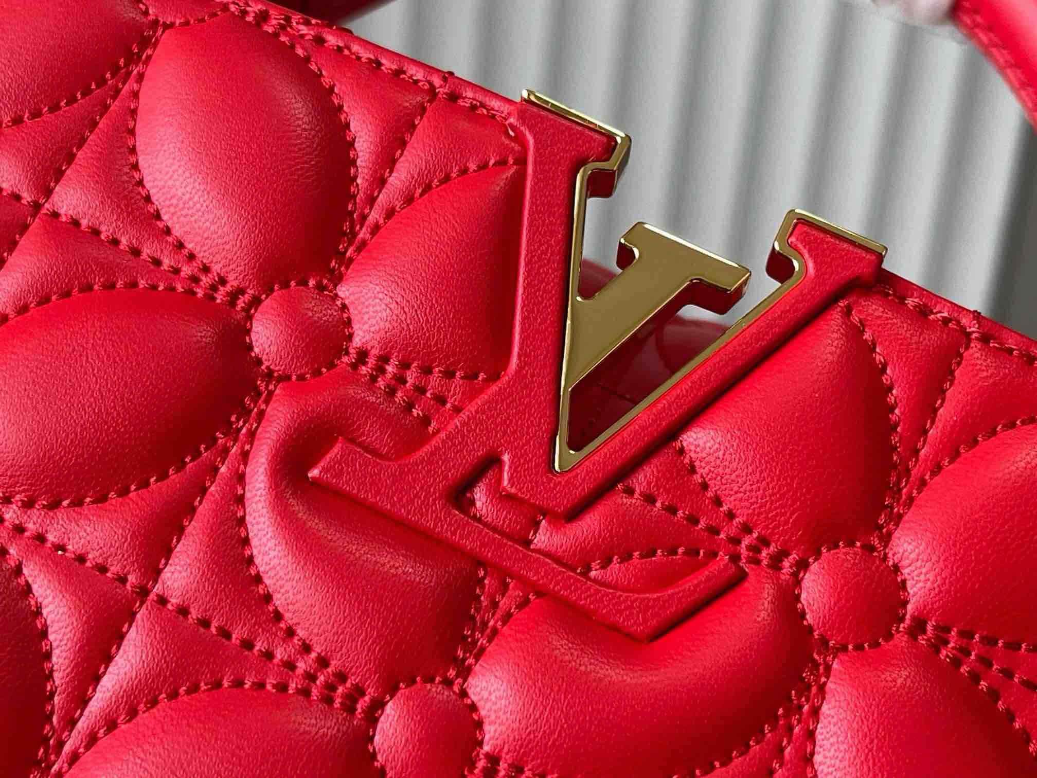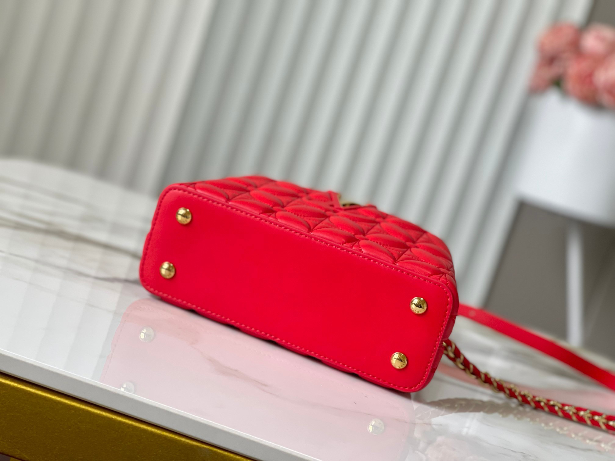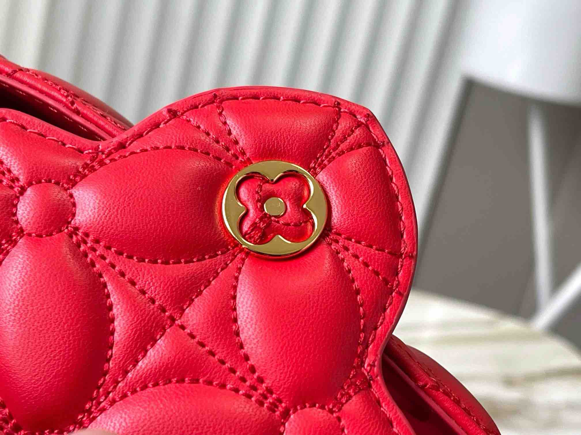秋冬特惠💰1600 渠道级LV 新品 te级LV 全套包装 M25332/M48865红色四叶草链条款(变码芯片)Monogram 花卉于优雅绗缝中浮现 为 Capucines 手袋吹袭门店装饰之风 柔软绵羊皮塑造沉稳构型与饰边 可拆卸肩带实现舒适肩背体验 Size:22 * 12 * 8 cm