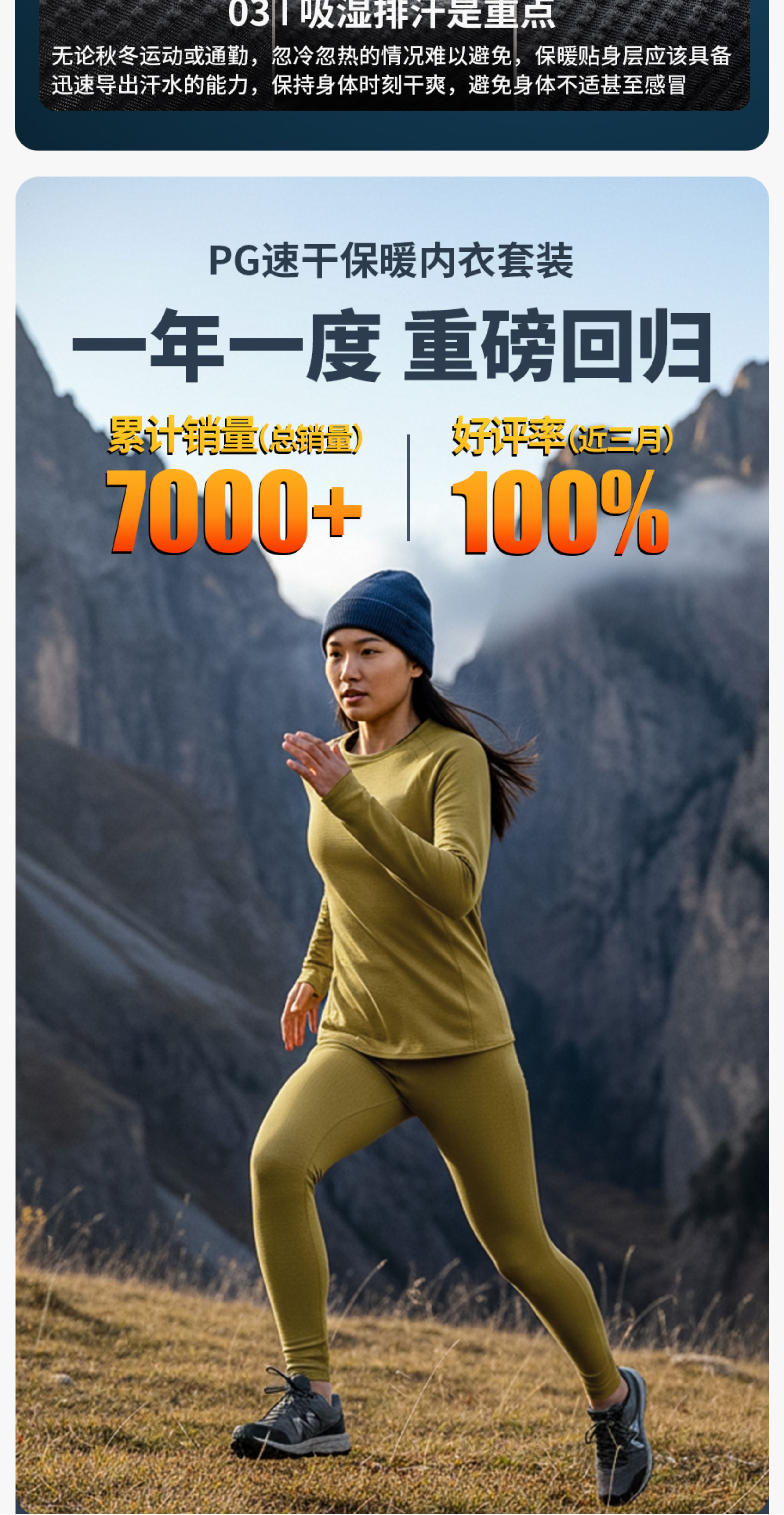 (爆款打底)PG微格绒 C4级速干排汗 秋冬女款保暖内衣打底衫保暖裤