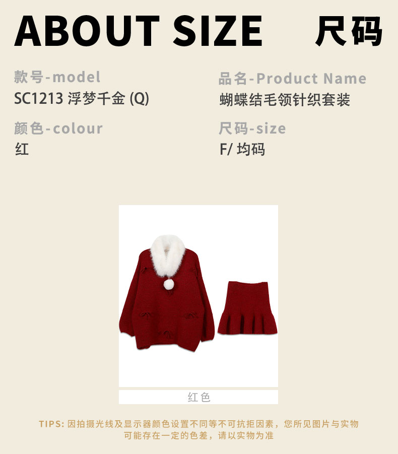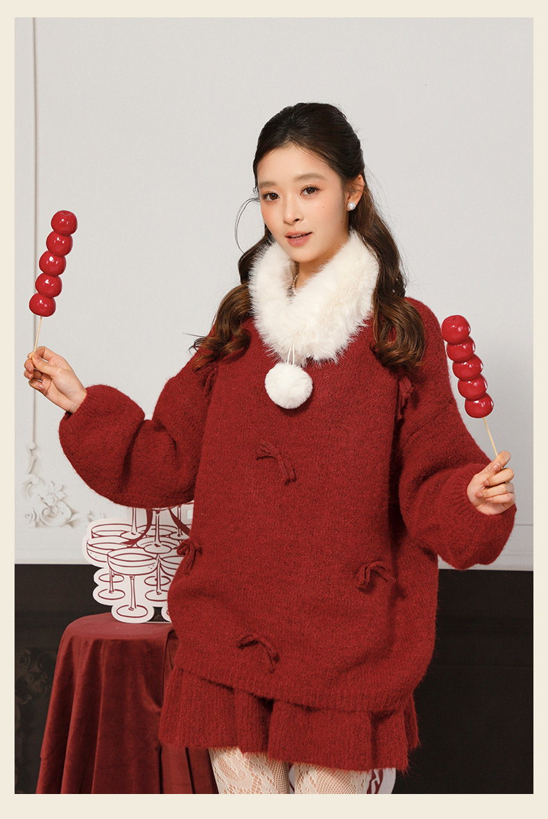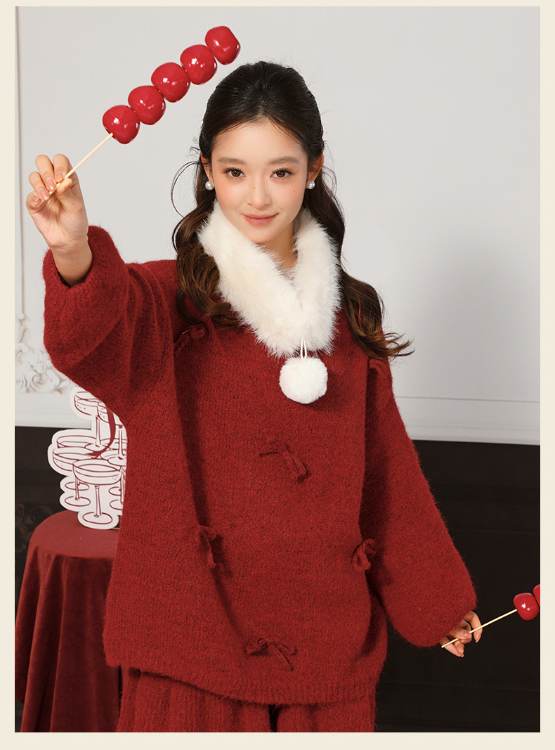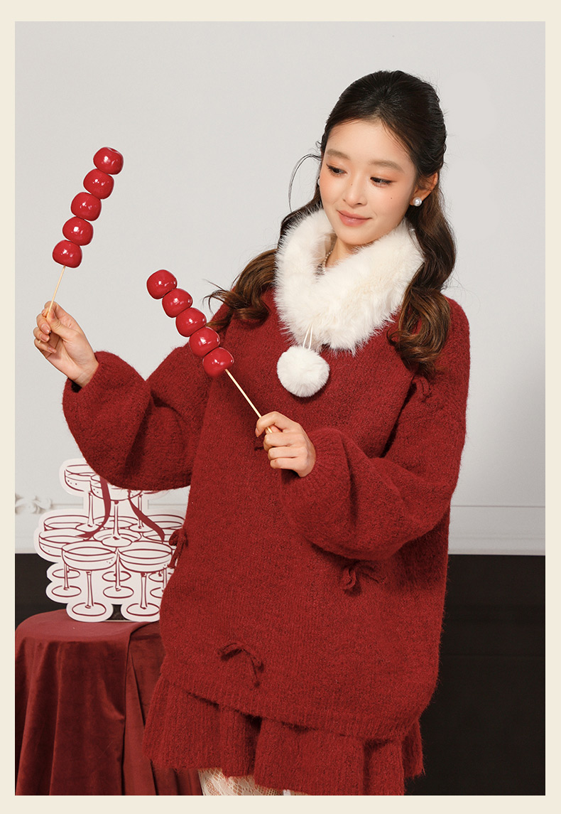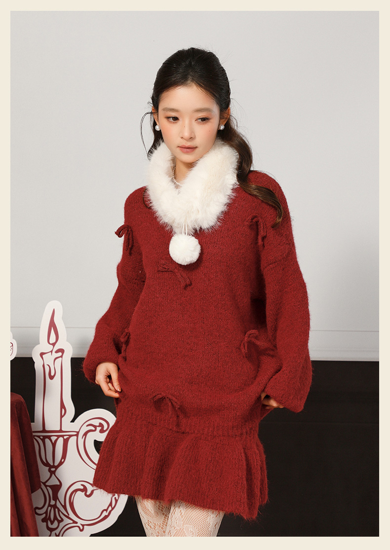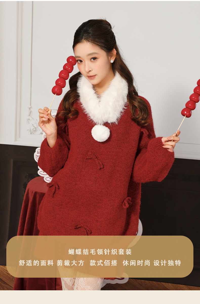 蝴蝶结毛领针织套装-纪念日百货门店同款168898643