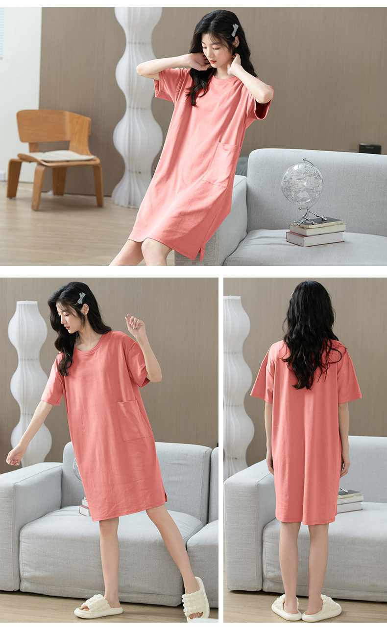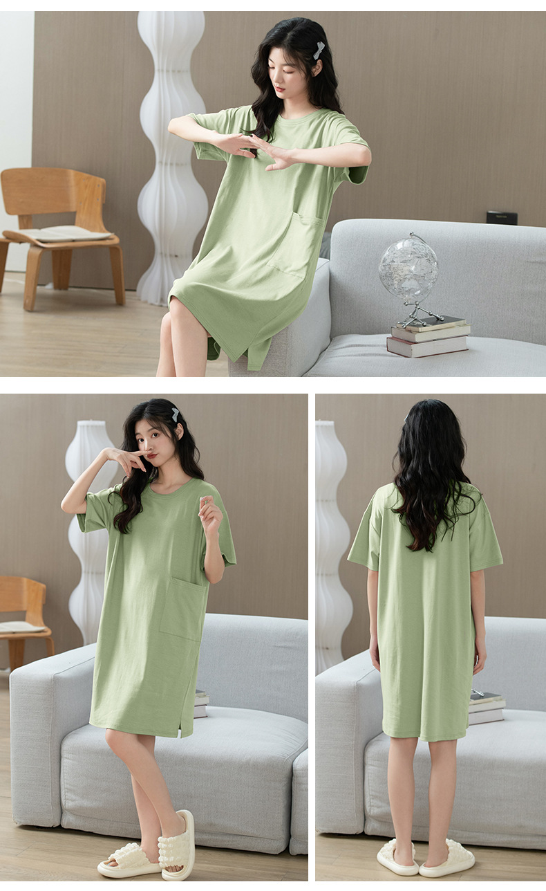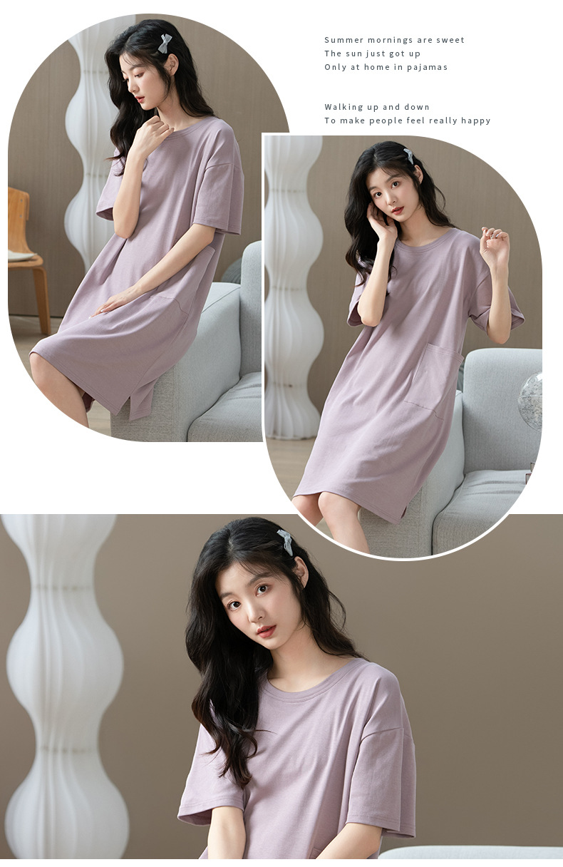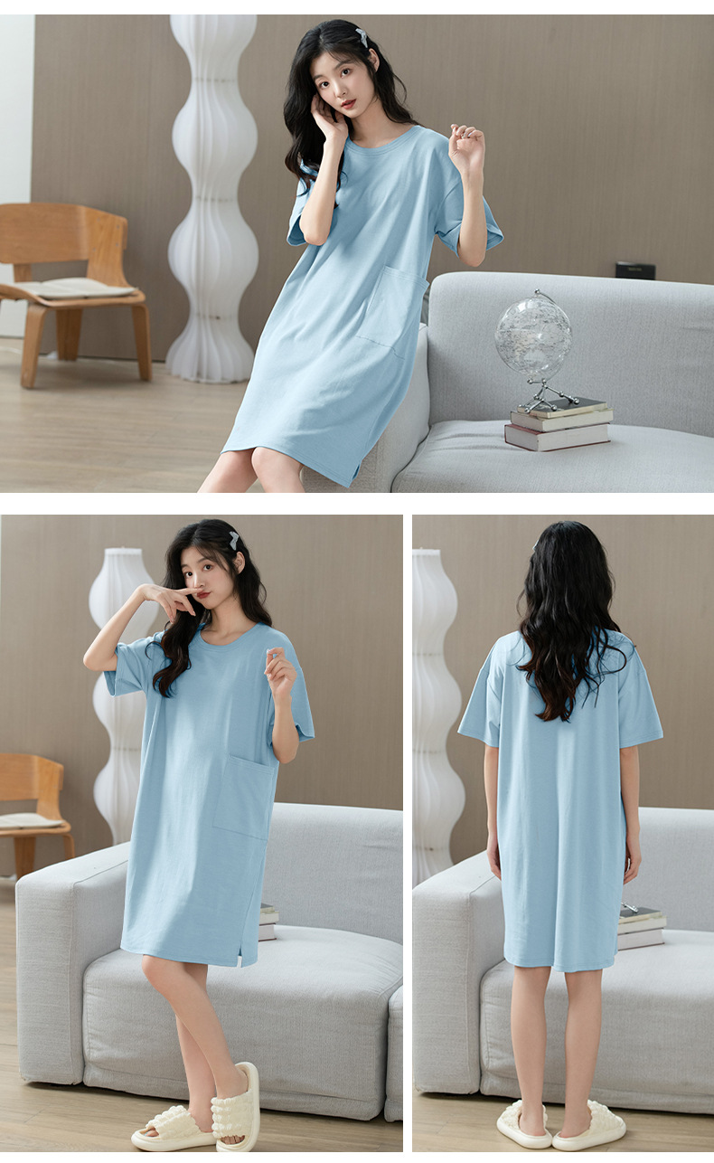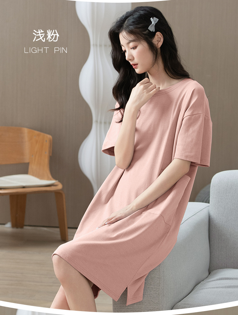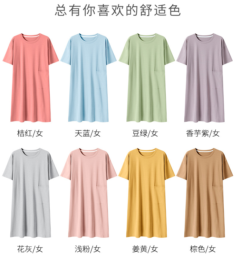 【瑜伽生活家】「数色可选!纯棉凉感」夏季睡衣女新款睡裙 女夏季短袖连体圆领舒适套头女士可外穿家居内衣服裙子