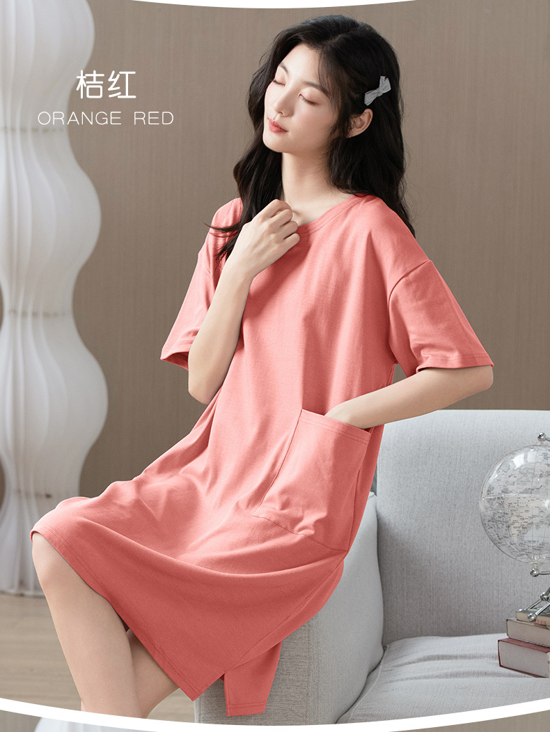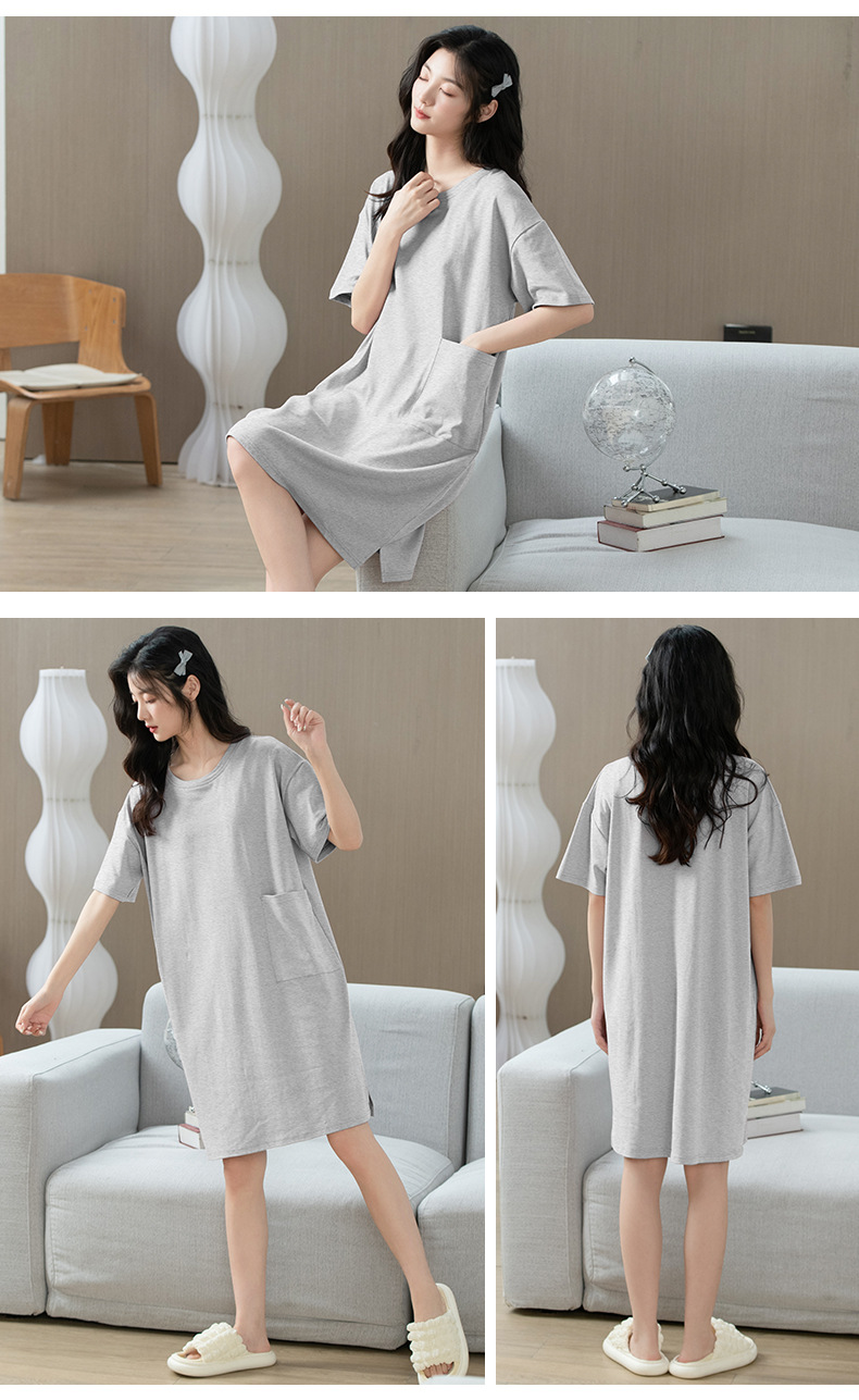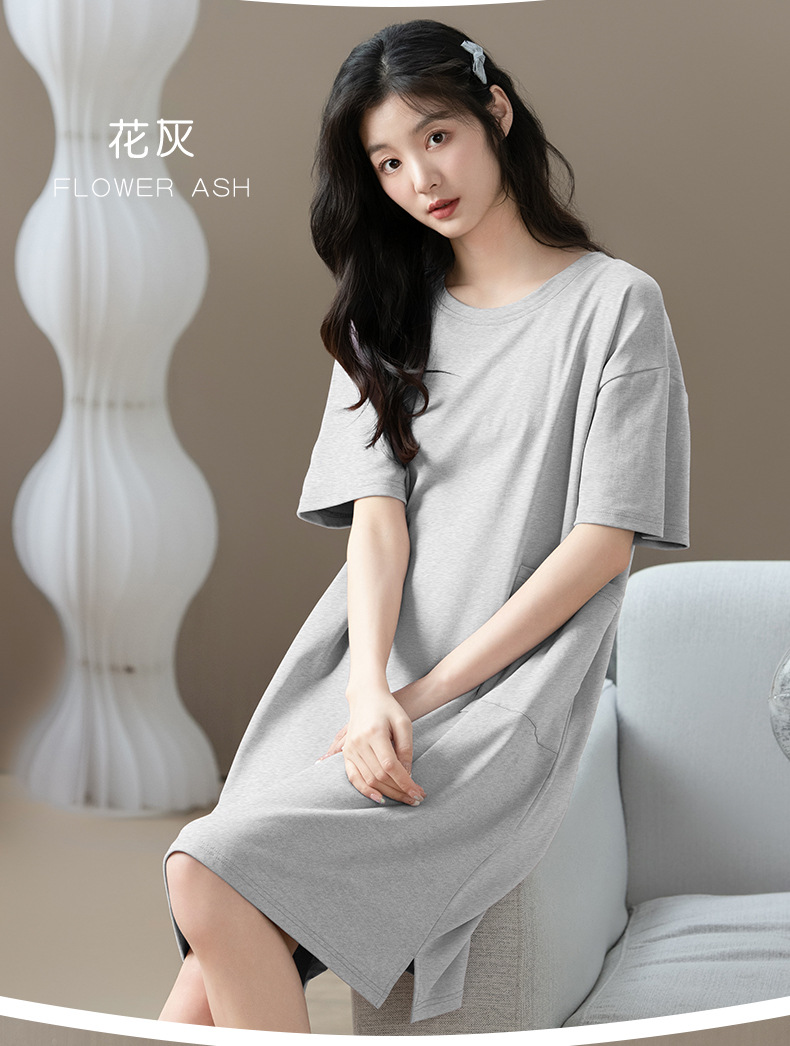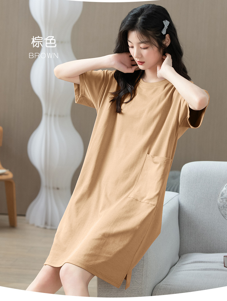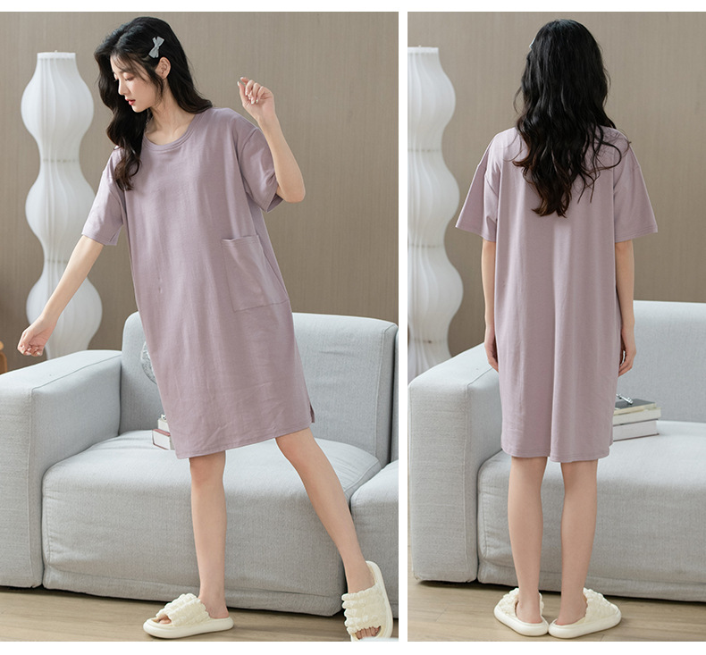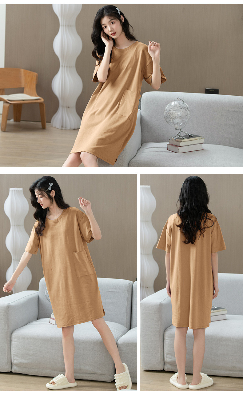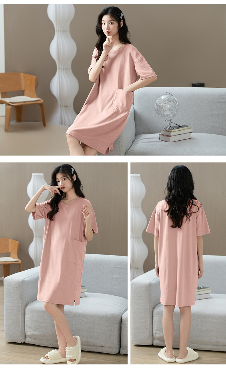 【瑜伽生活家】「数色可选!纯棉凉感」夏季睡衣女新款睡裙 女夏季短袖连体圆领舒适套头女士可外穿家居内衣服裙子