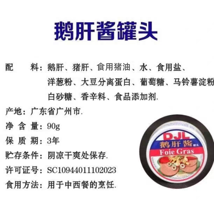 90g DJL東佳利 鹅肝酱 法式鹅肝酱鹅肝泥罐头 非纯鹅肝含猪肝 西式早餐搭配开罐即食