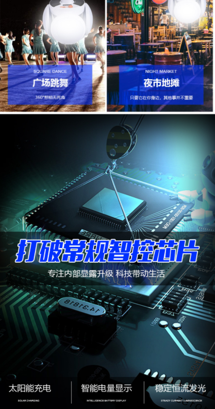 LED充电照明灯 户外家用停电挂灯太阳能野外应急露营灯摆地摊夜市3.82