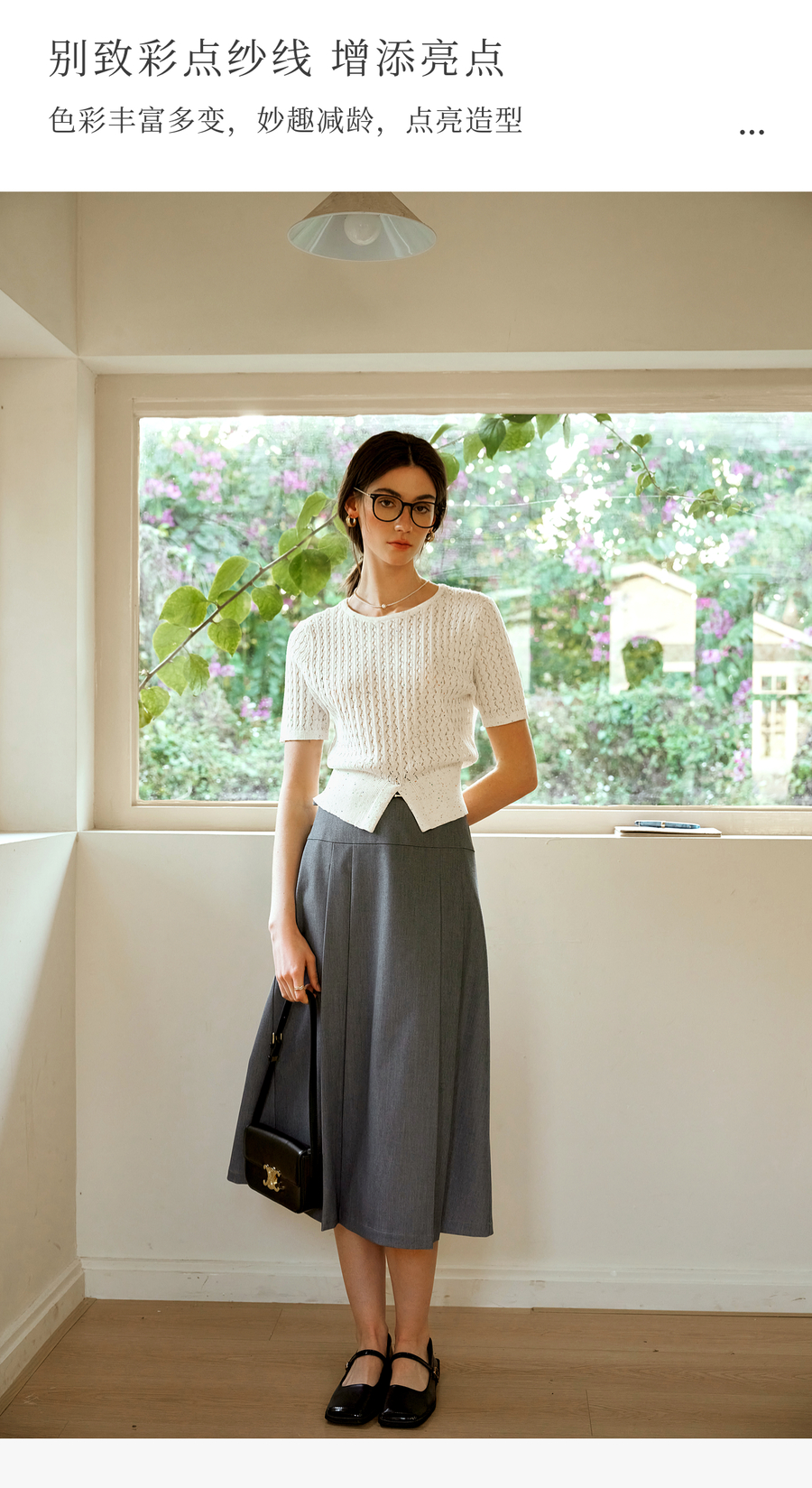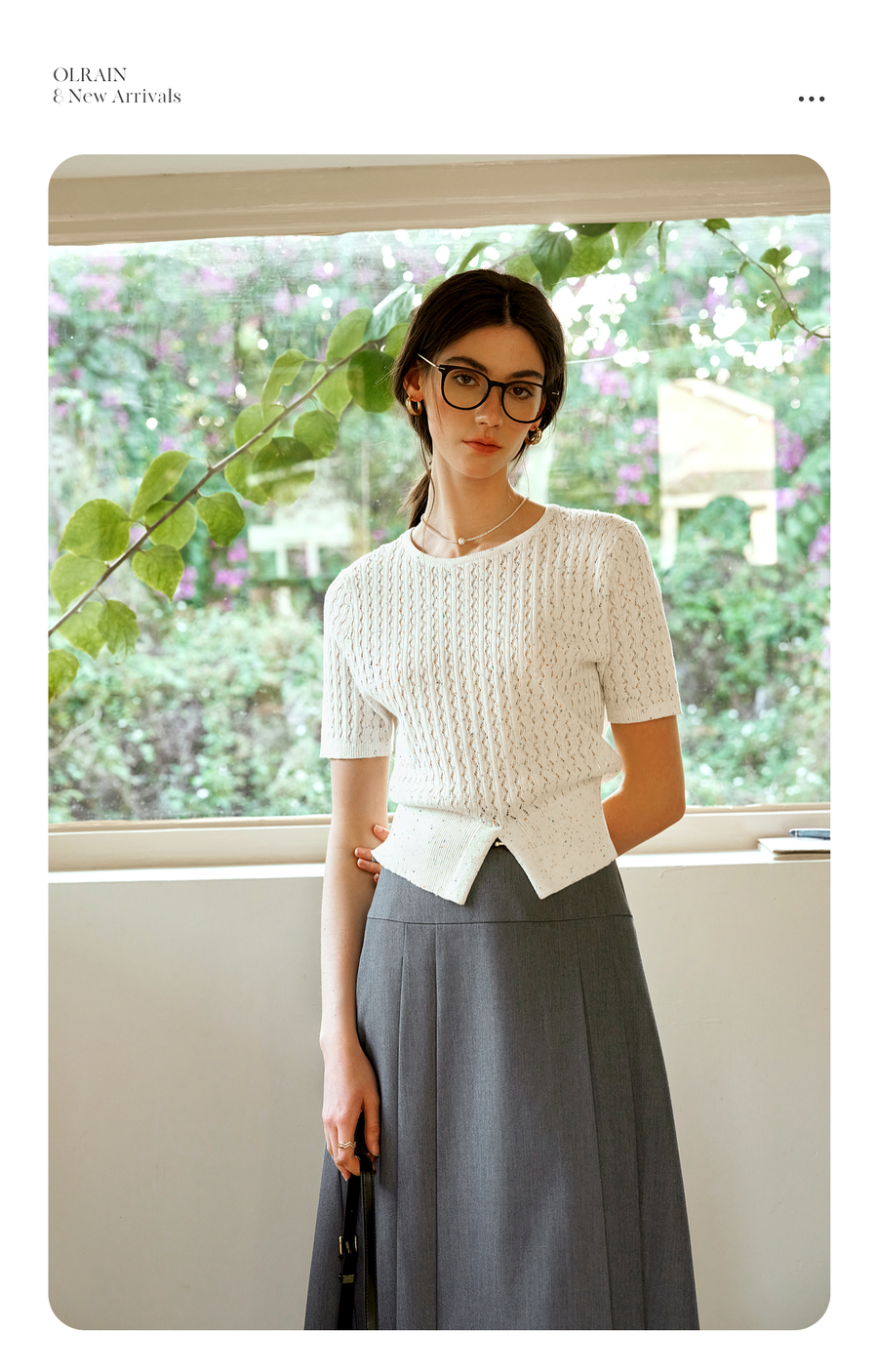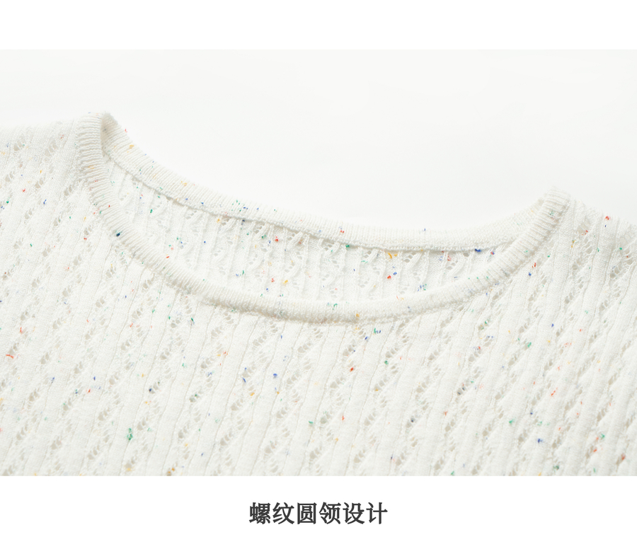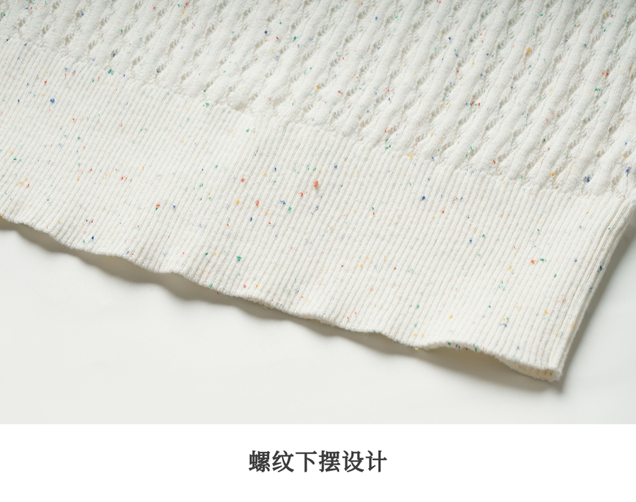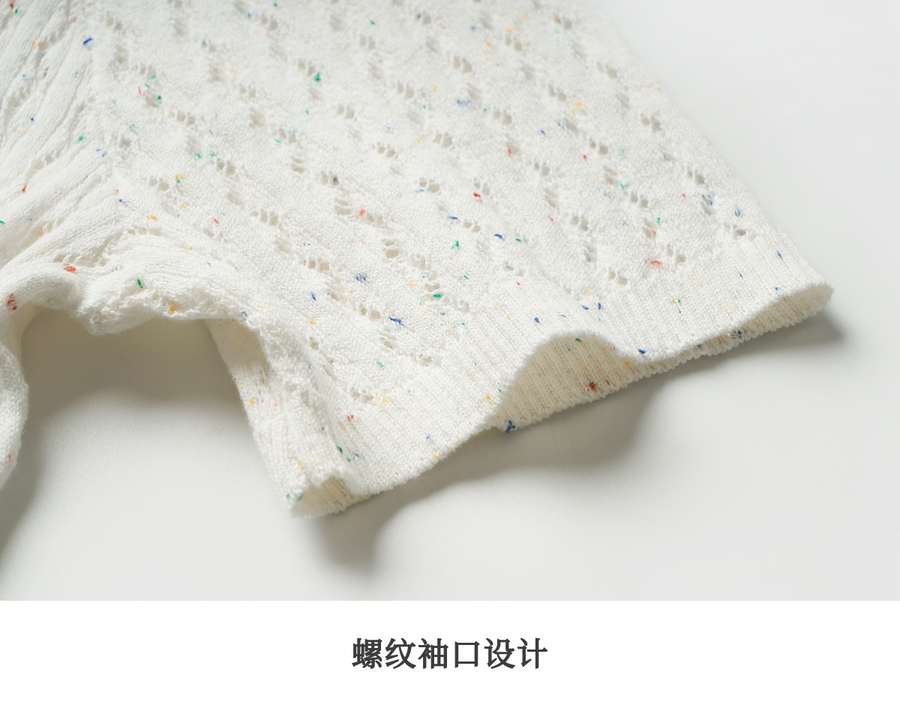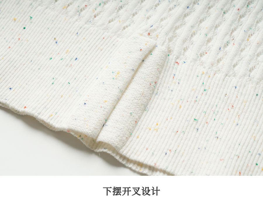 OLrain欧芮儿彩点开叉针织衫女春季2025年新款修身设计感镂空上衣