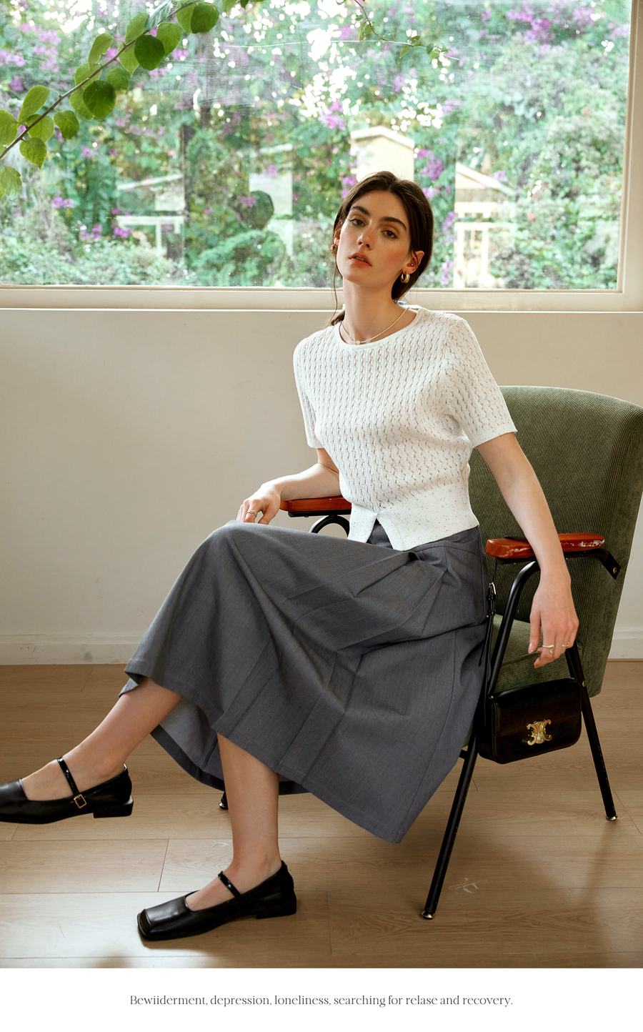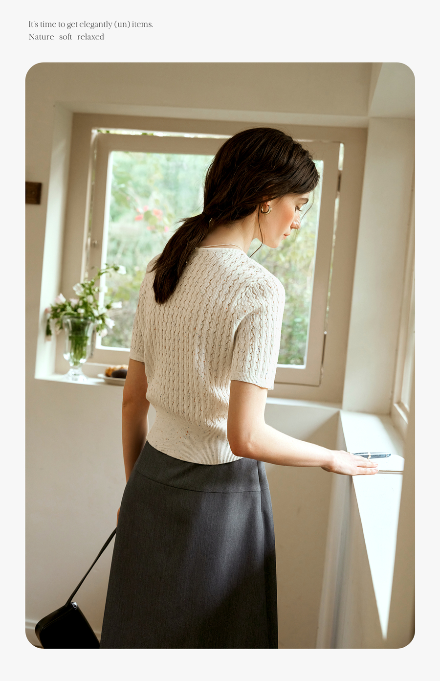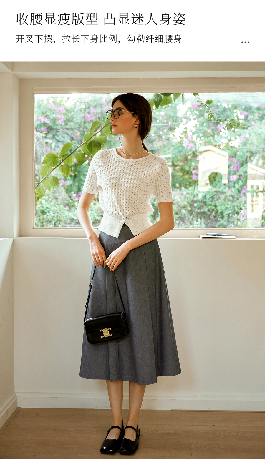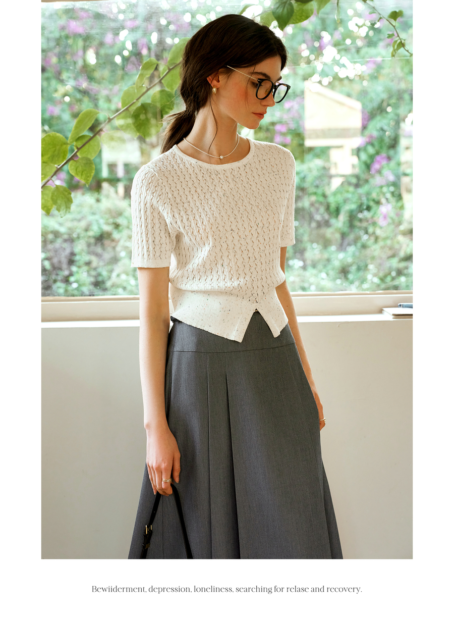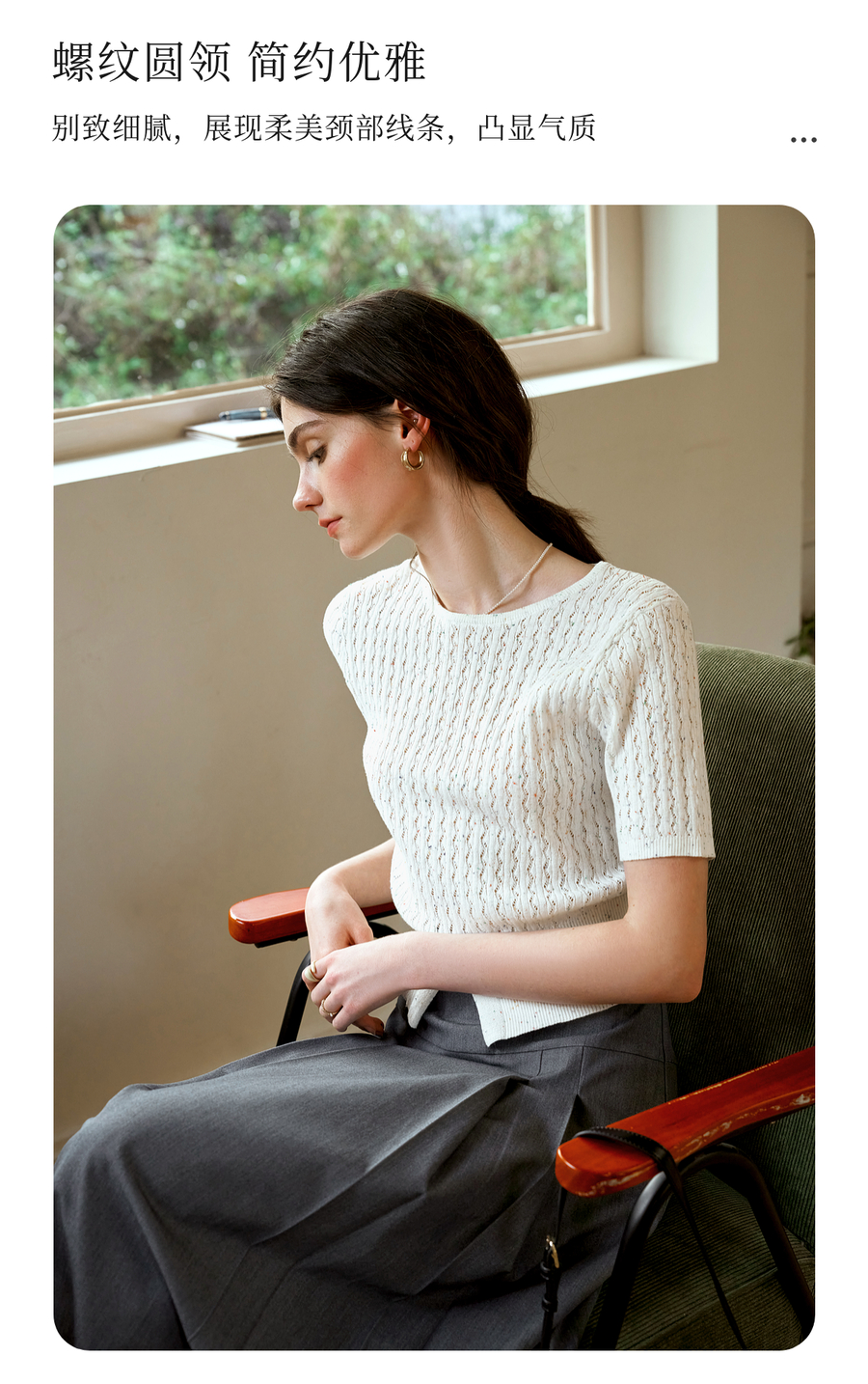OLrain欧芮儿彩点开叉针织衫女春季2025年新款修身设计感镂空上衣