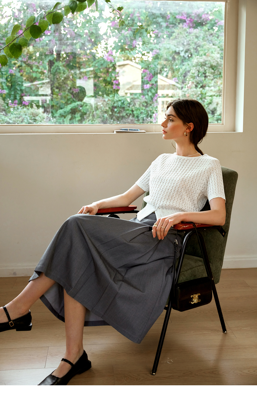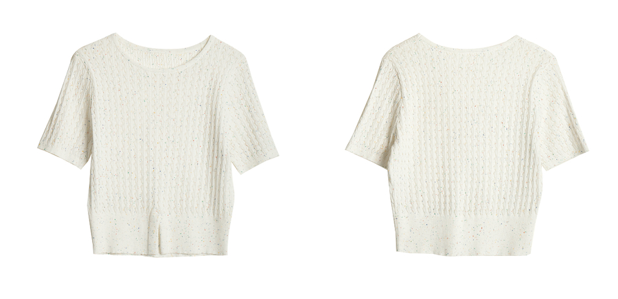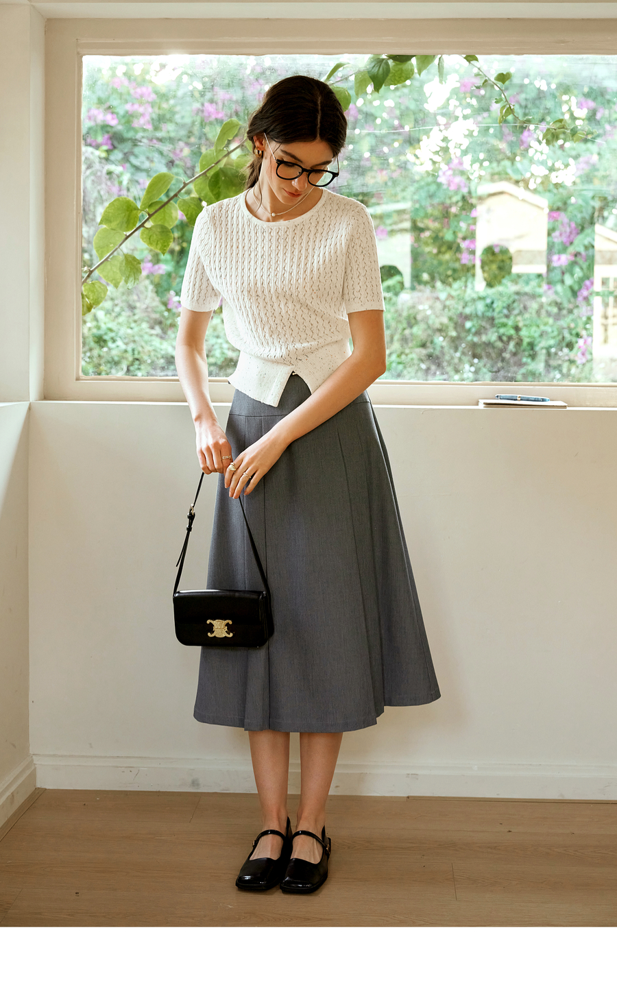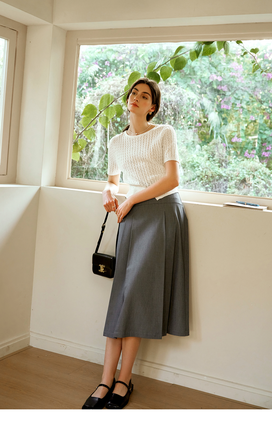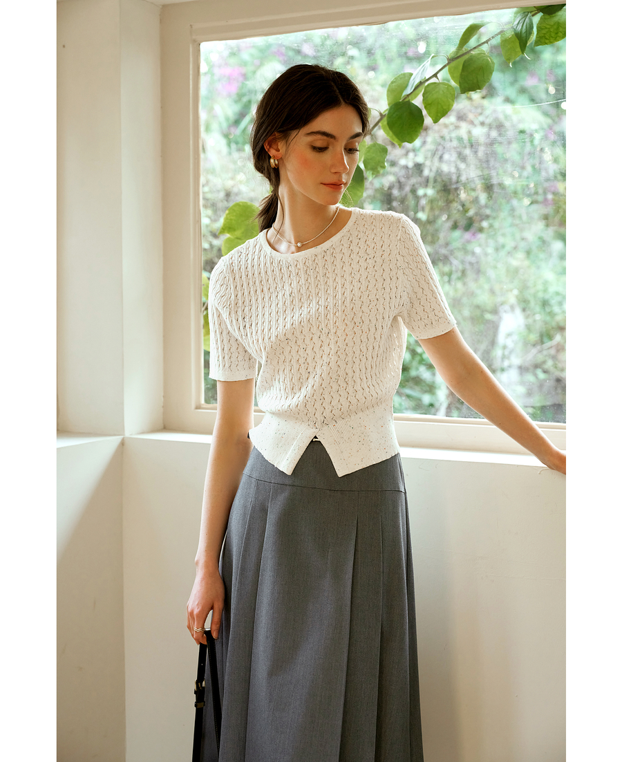 OLrain欧芮儿彩点开叉针织衫女春季2025年新款修身设计感镂空上衣