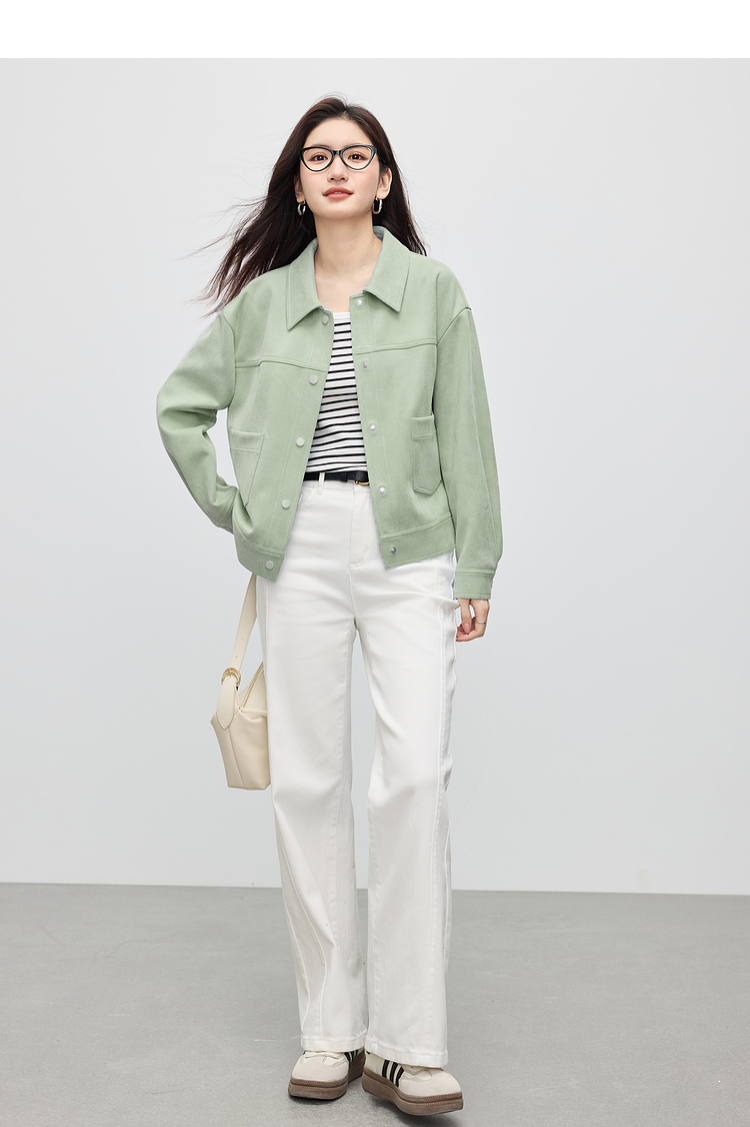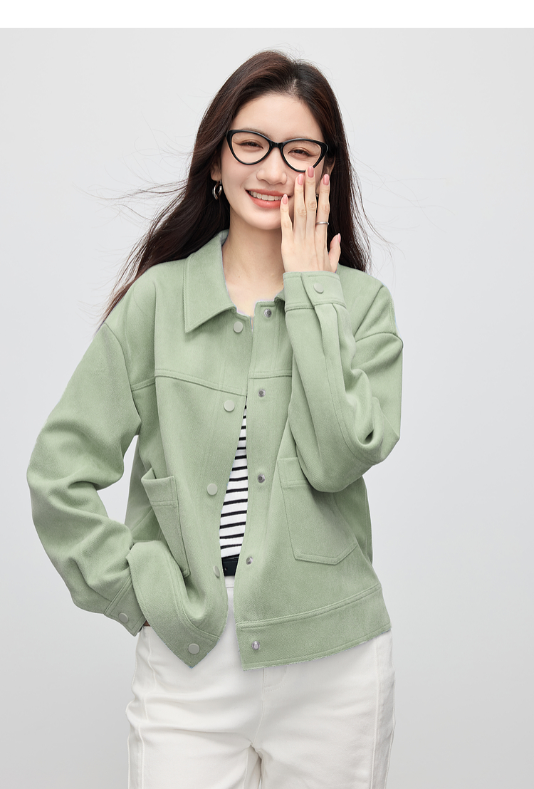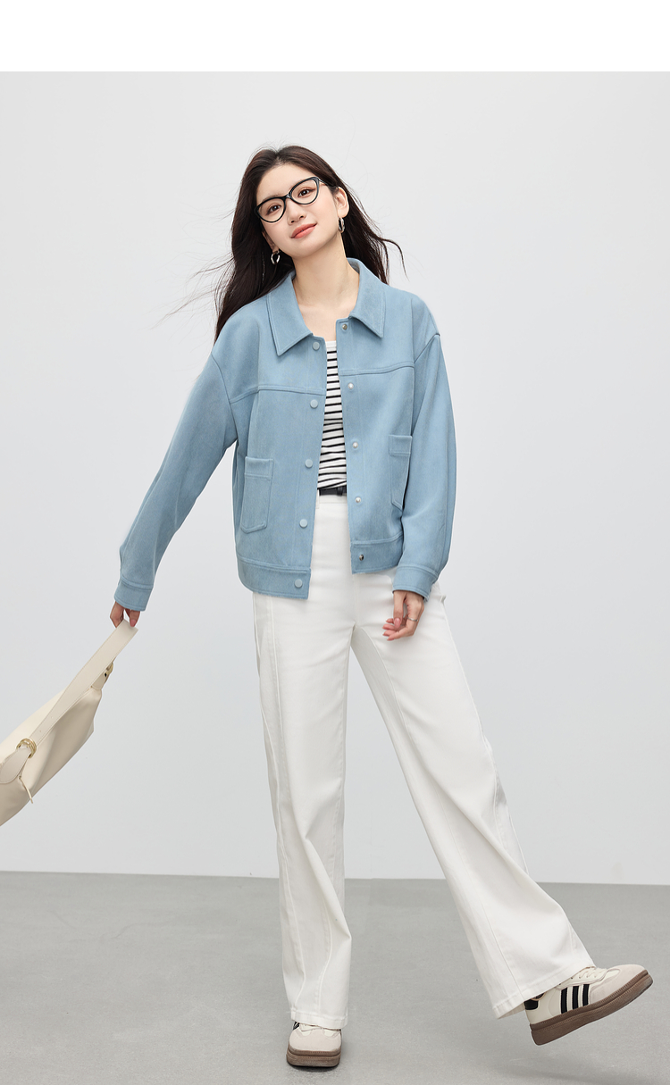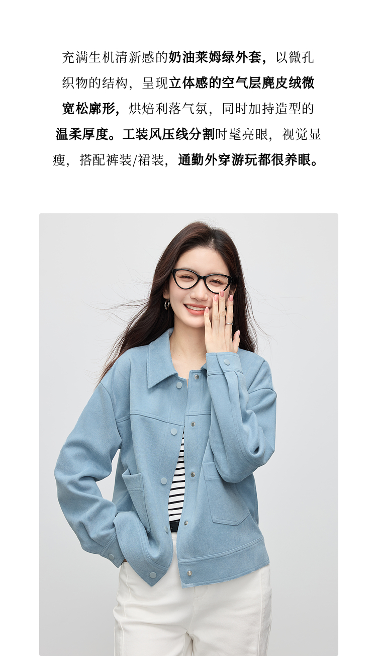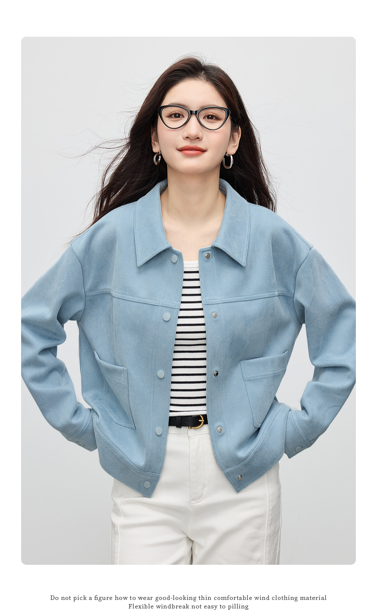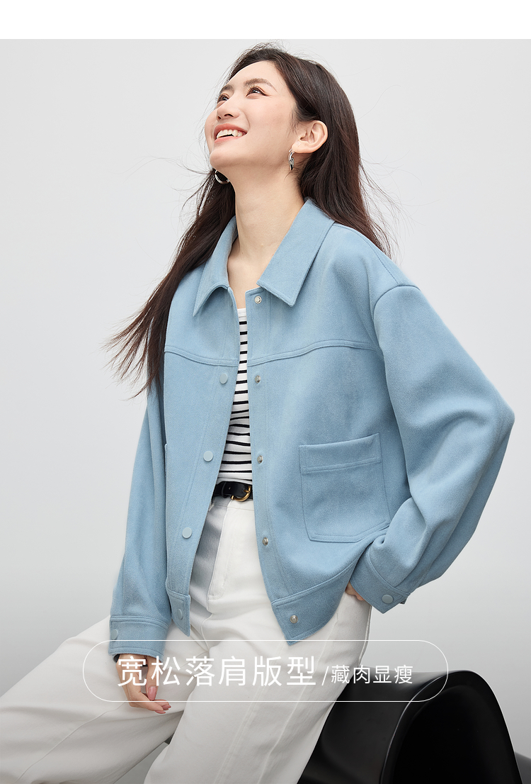【年货节】熙世界高级感麂皮绒外套女短款2025年春装新款小个子休闲夹克上衣