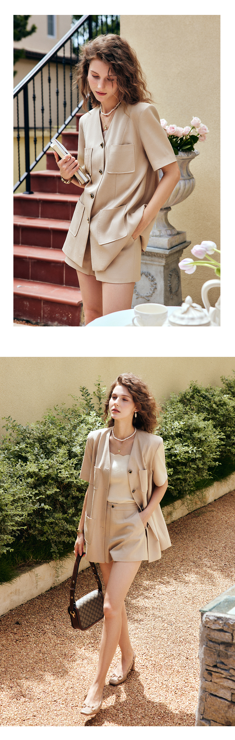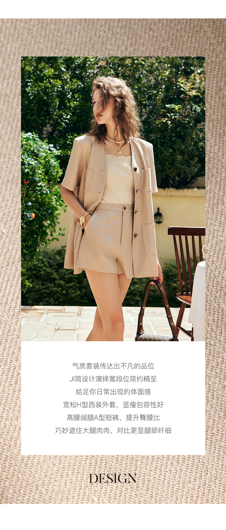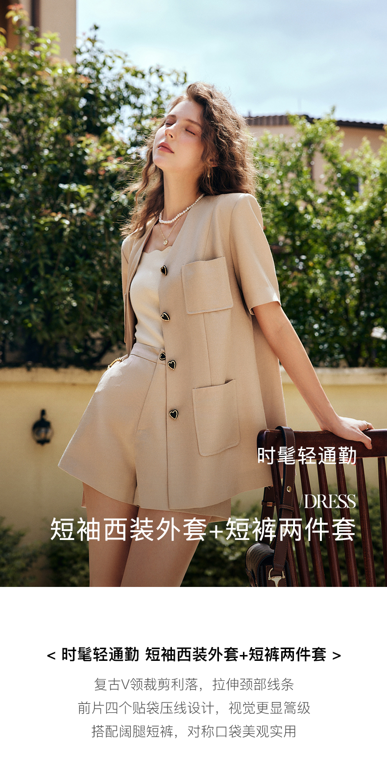 OLrain法式咖色时尚套装女早秋2022年新款宽松复古西装短裤两件套