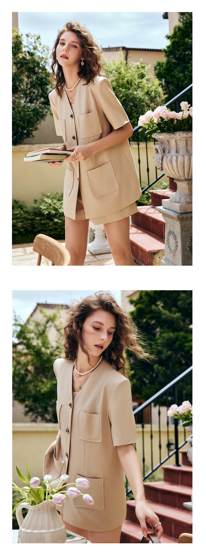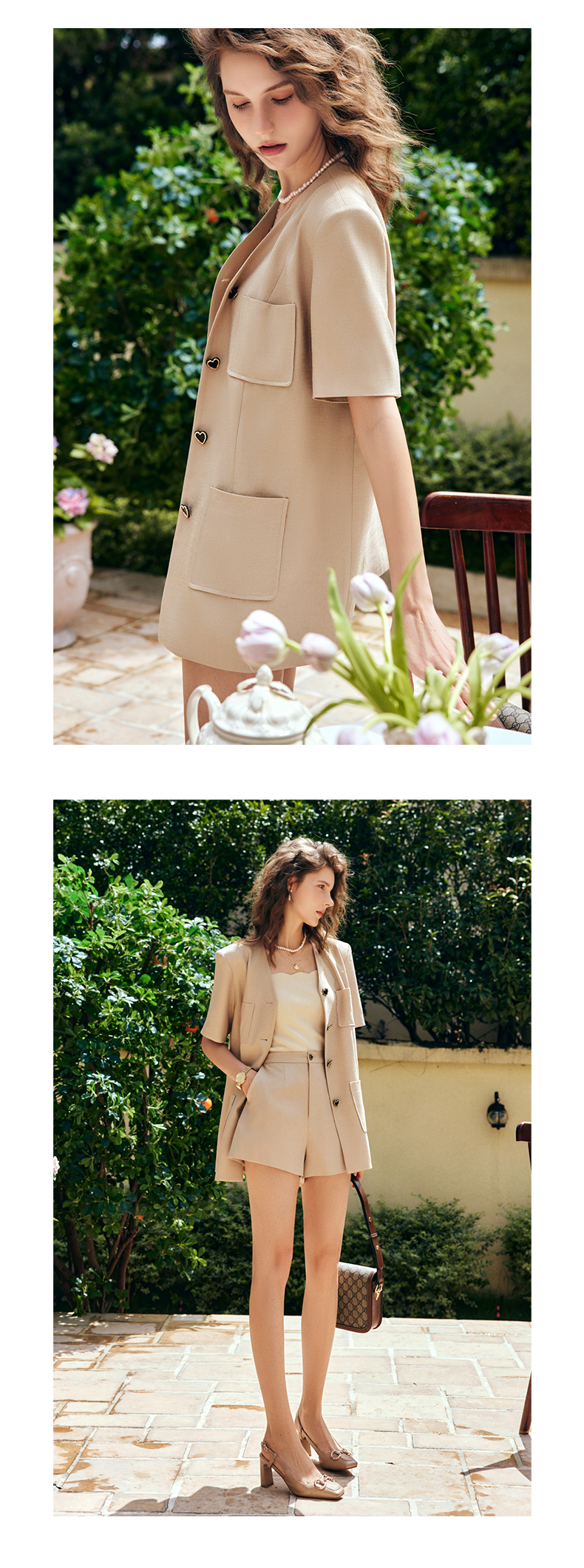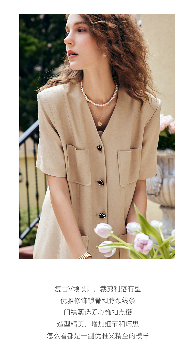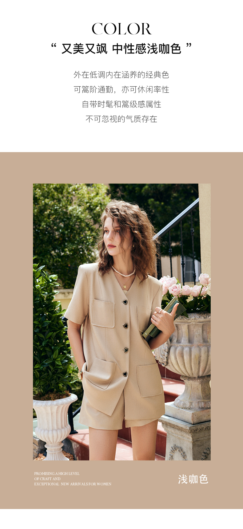 OLrain法式咖色时尚套装女早秋2022年新款宽松复古西装短裤两件套