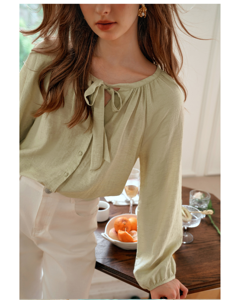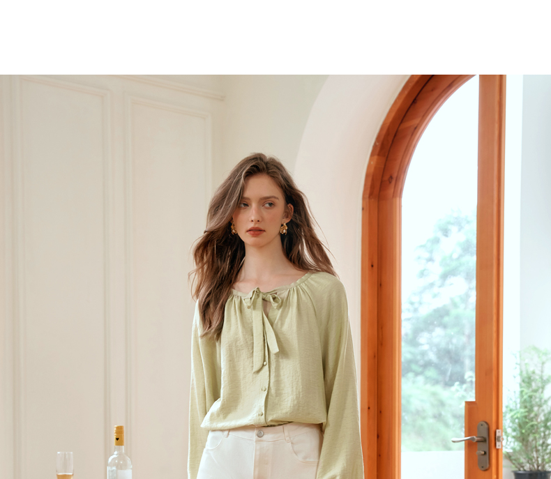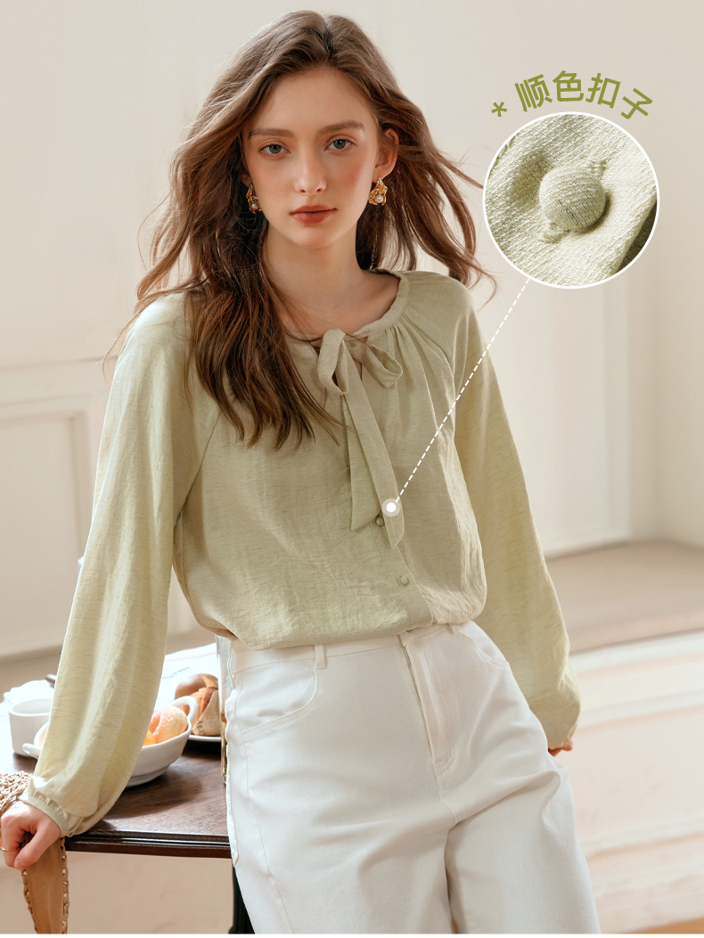 OLrain欧芮儿法式飘带长袖衬衫女早秋2024年新款时尚通勤气质衬衣