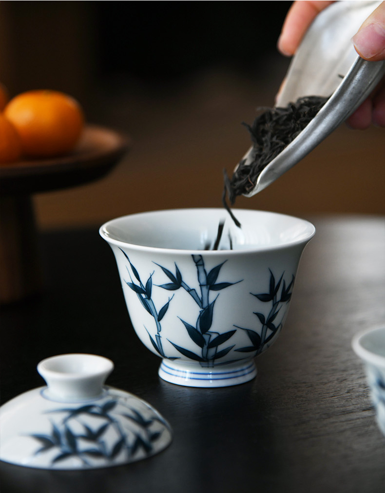 青花点工竹茂茶具套装茶杯家用陶瓷主人杯品茗杯三才盖碗高档礼盒