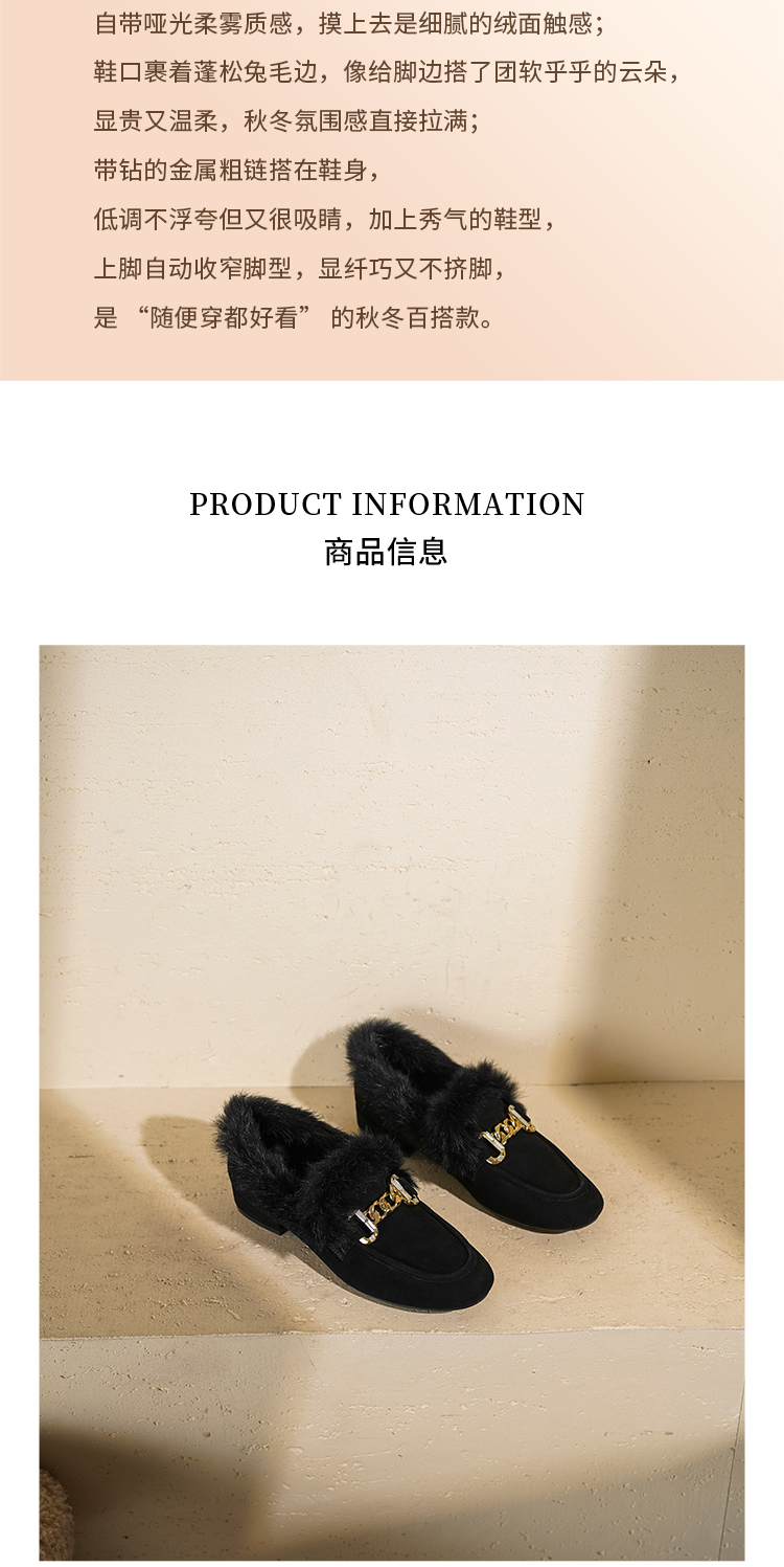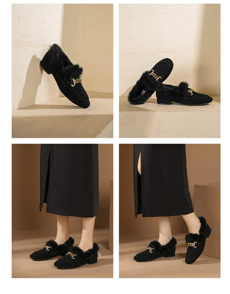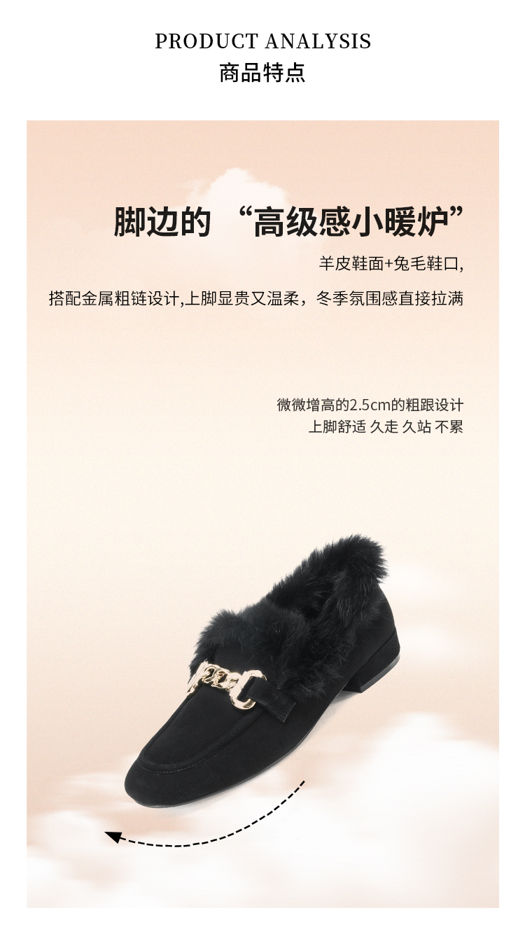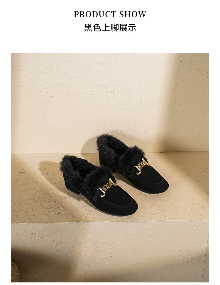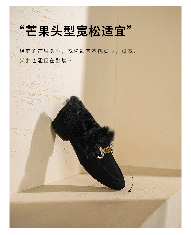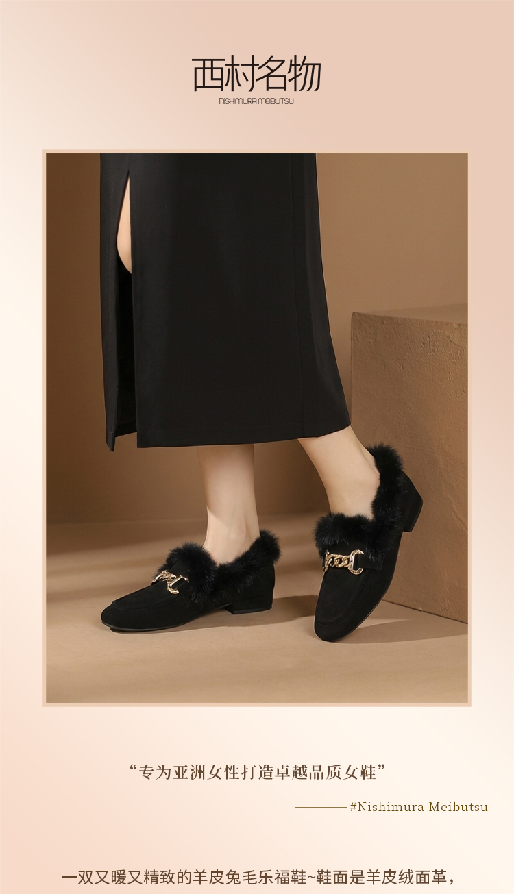 【羊皮绒面】西村名物2026年春季新款芒果头宽松舒适毛绒内里高级感粗跟毛毛鞋T26AM17751