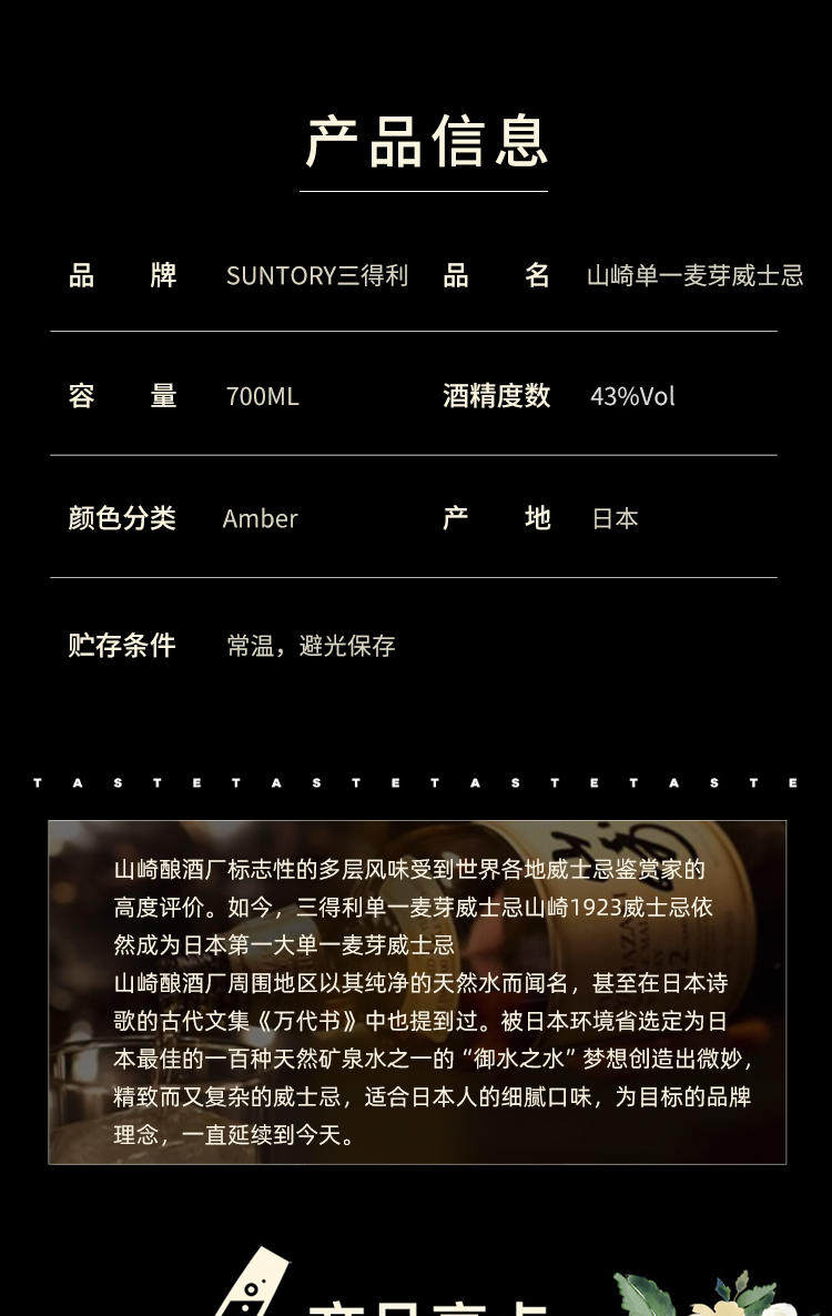 三得利山崎1923单一麦芽威士忌700ml