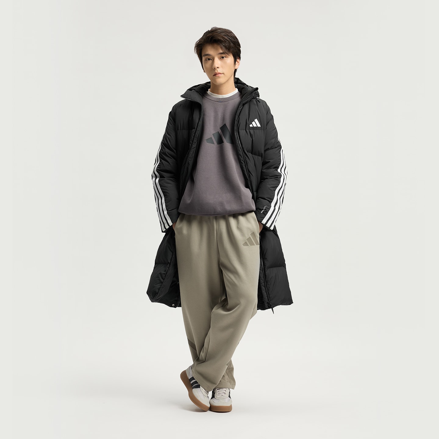 Adidas阿迪达斯LONG DOWN JACKET 男子三条纹羽绒服 拒水防风保暖长款连帽600蓬鸭绒KC2498