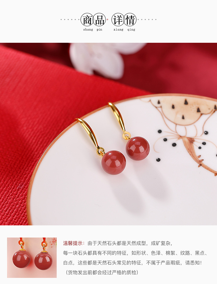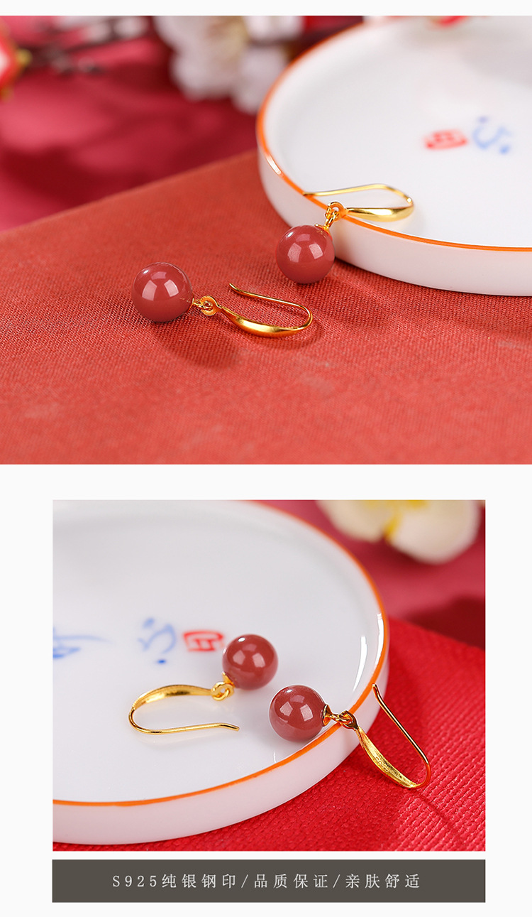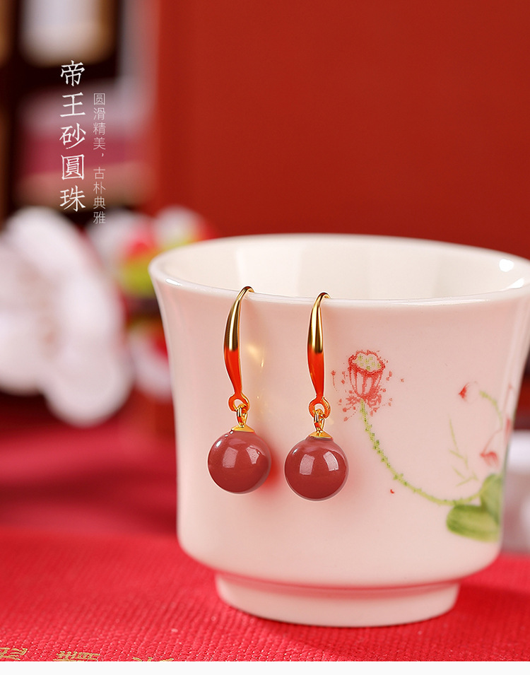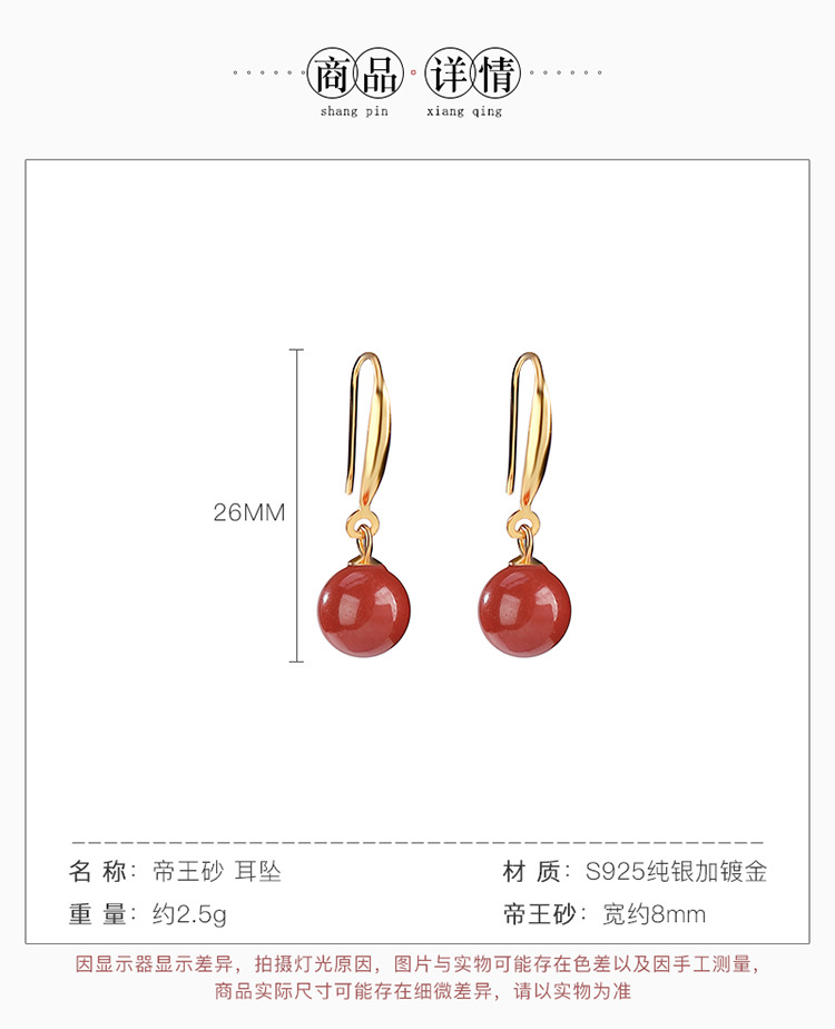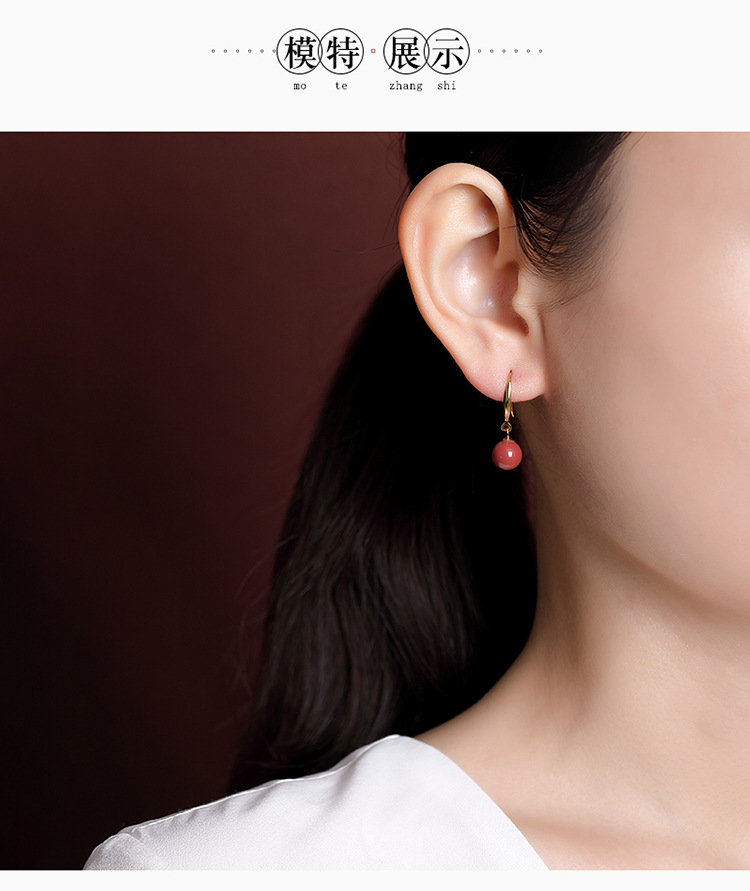 【红颜独醉】S925银镀金帝王砂圆珠耳饰【CW-EG01867】