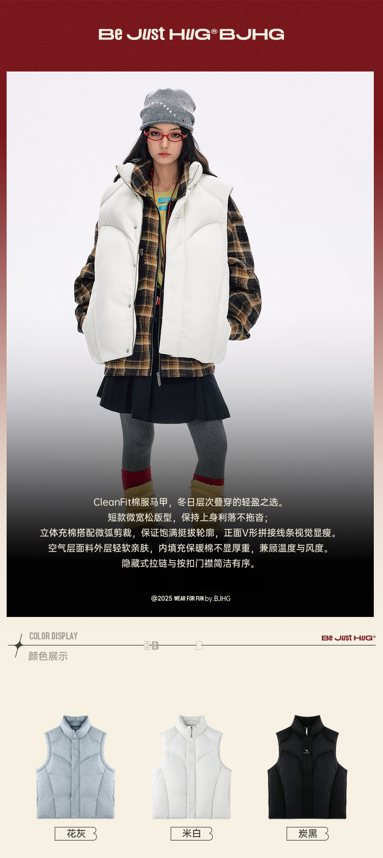 BJHG不计后果空气层马甲棉服男款冬季2025新款棉衣保暖棉袄外套女