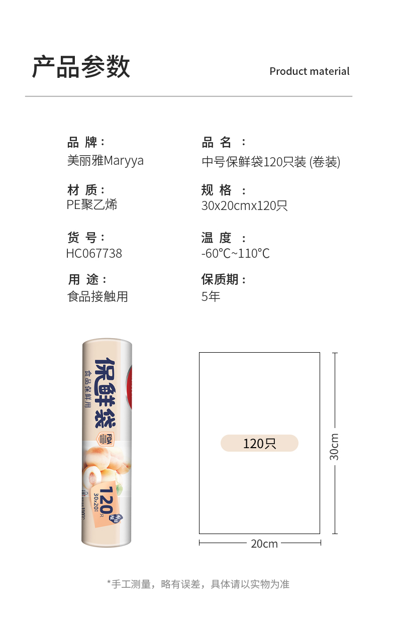 【批发】美丽雅 点断式保鲜袋中号30*20cm*120只装