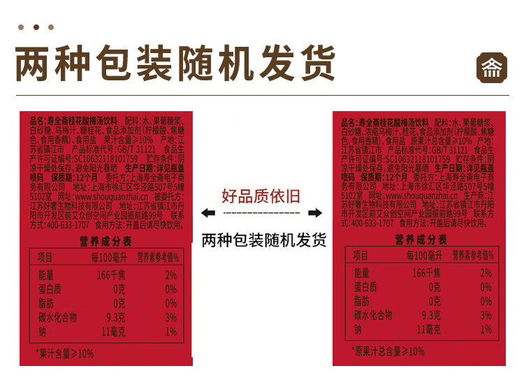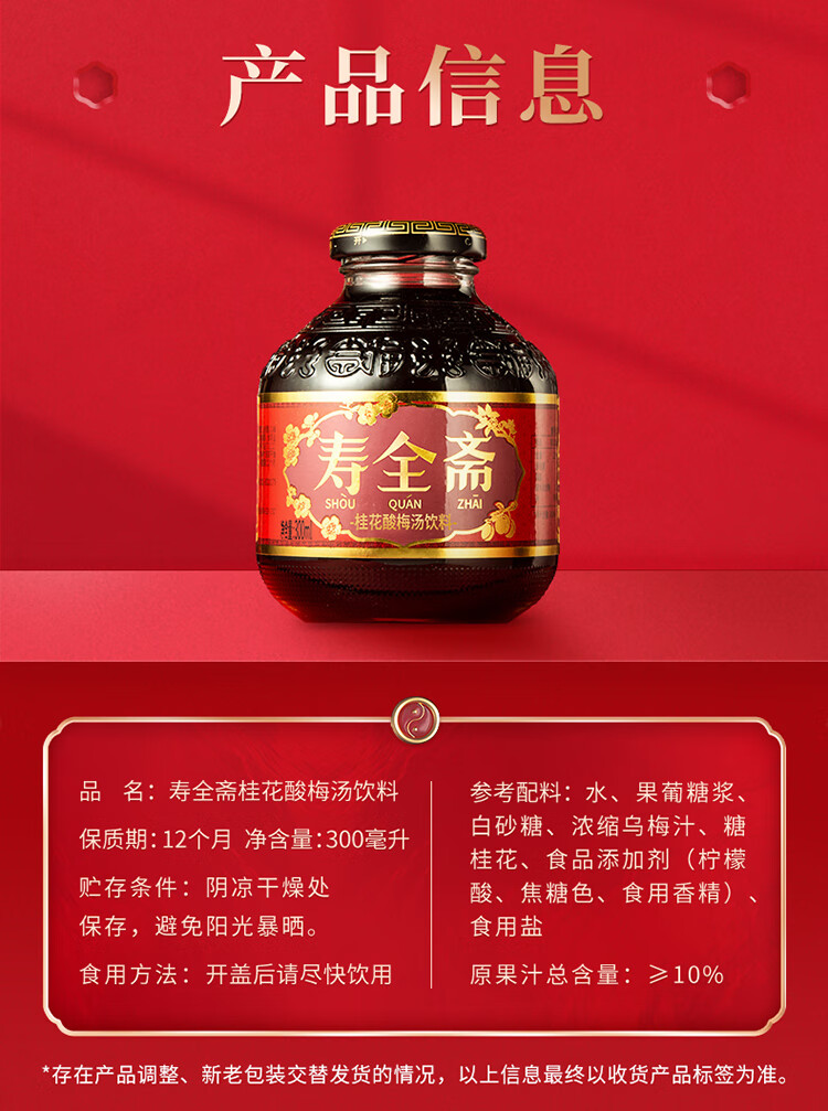 【分仓直发包邮】寿全斋桂花酸梅汤300ml*12瓶
