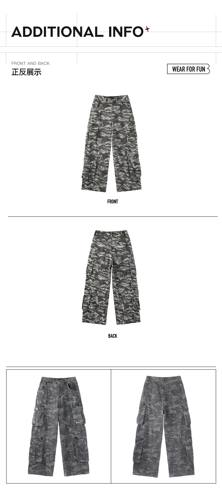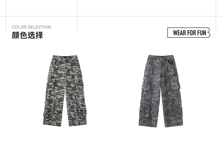 BJHG不计后果做旧迷彩裤子男款新款春季潮牌废土运动阔腿休闲裤女