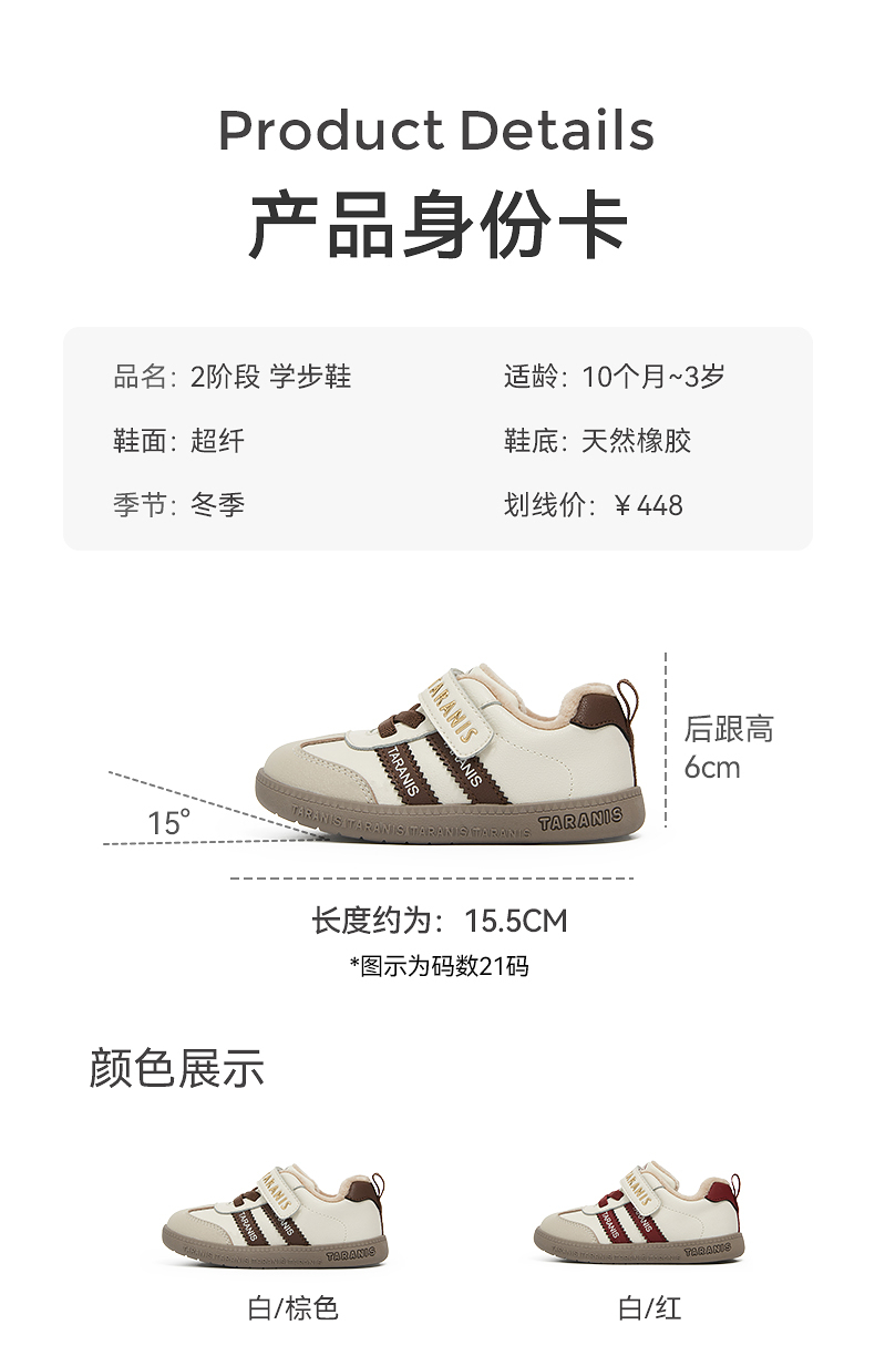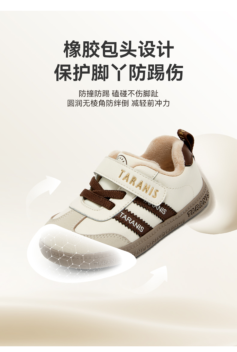 泰兰尼斯25年冬季新款童鞋学步鞋男宝宝机能鞋加绒保暖德训鞋女童鞋子 T02T5D7522