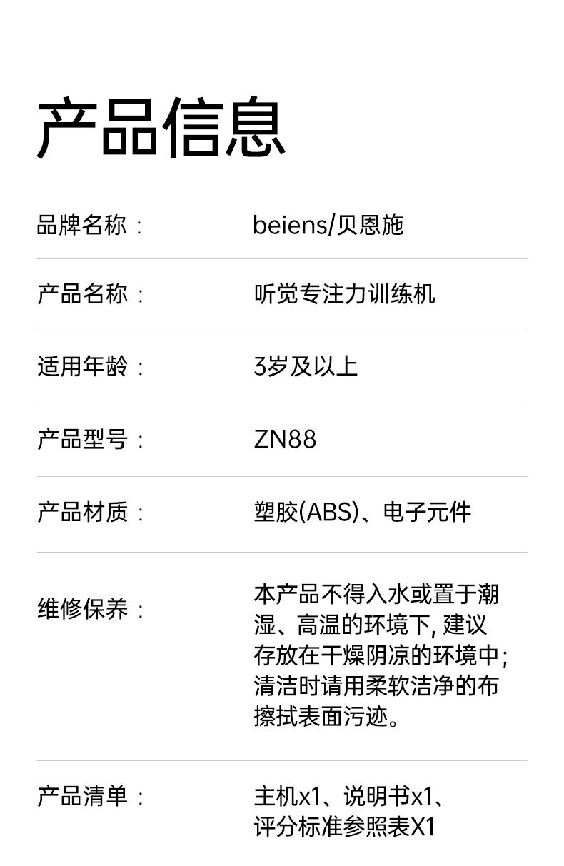 贝恩施听觉专注力训练机幼儿小学生必备听力训练神器 MXT