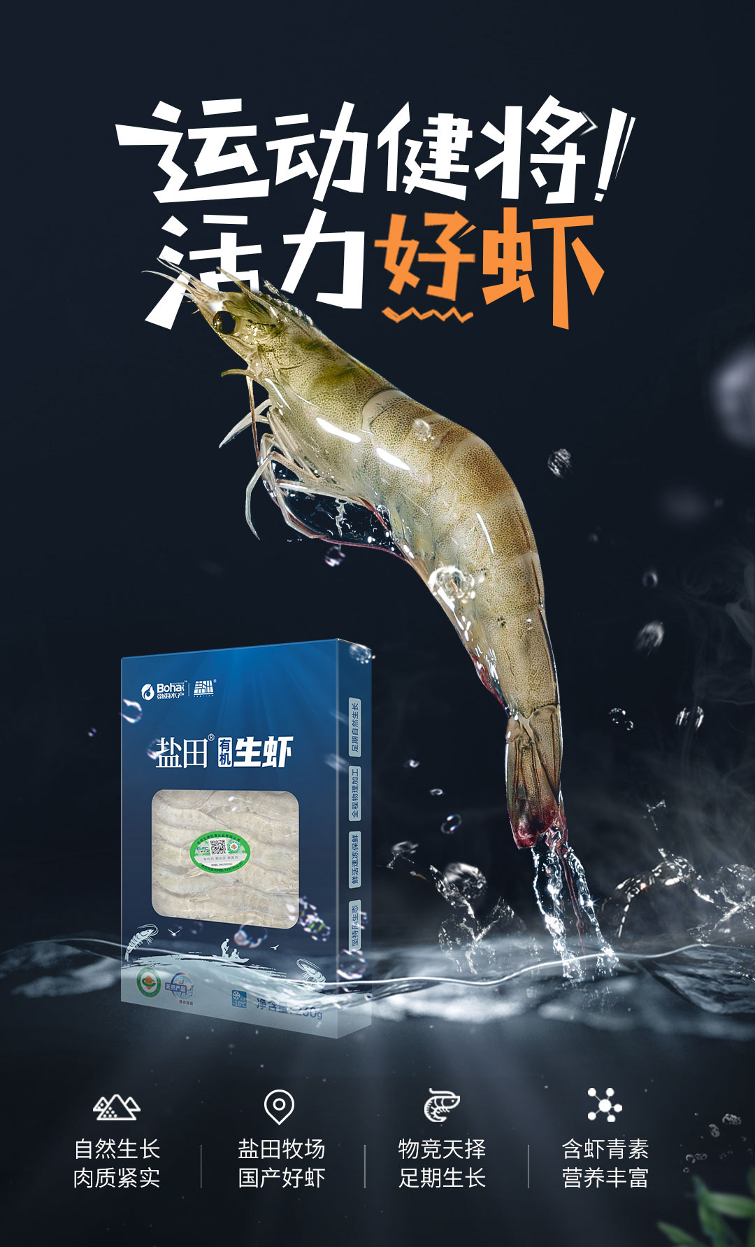 自营(美厨)-盐田 有机生盐田虾(26-30只/斤)230g/盒*3 顺丰包邮