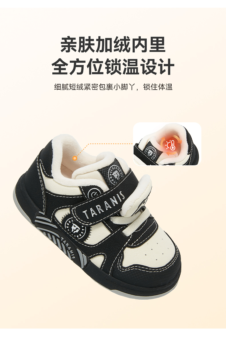 泰兰尼斯冬季加绒学步鞋男童女童保暖闪灯鞋宝宝鞋魔术贴防滑板鞋T02T5D7512