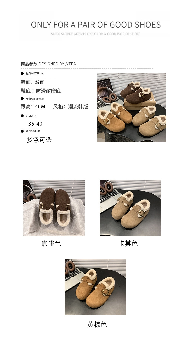 优诗莱加绒勃肯鞋 磨砂绒面耐磨有质感 内里短毛绒保暖舒适 3-4cm左右内跟高 显高显腿瘦 时尚百搭