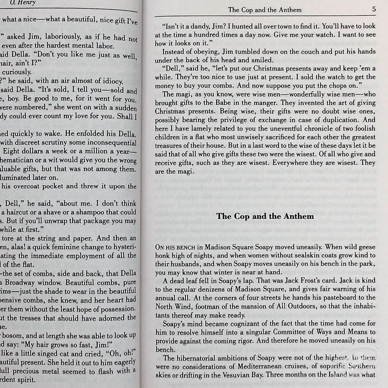 亨利尽管他的工作为他赢得了狂热的读者,但O.亨利抵达纽约后仅八年就死于贫穷和遗忘。但是在他的故事库中,他留下了诸如《贤士的礼物》,《最后的叶子》,《红酋长的赎金》,《城市之声》和《警察与警察》等流派经典。 “ Anthem”-全部包含在此选择中。共同核心州标准倡议的精选。