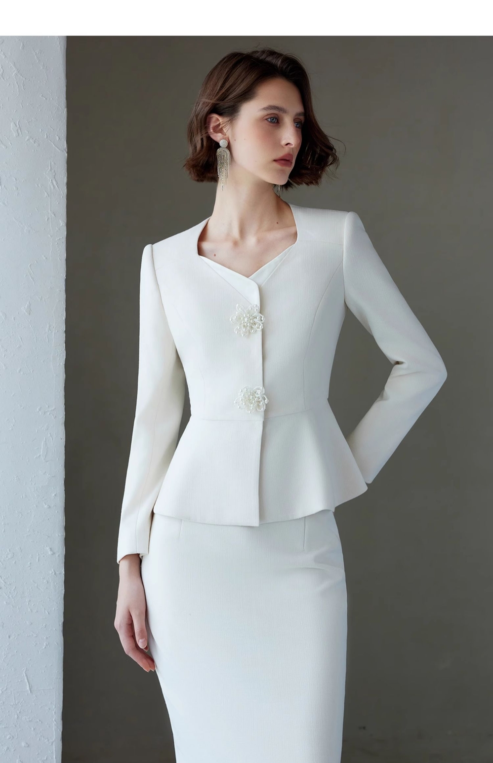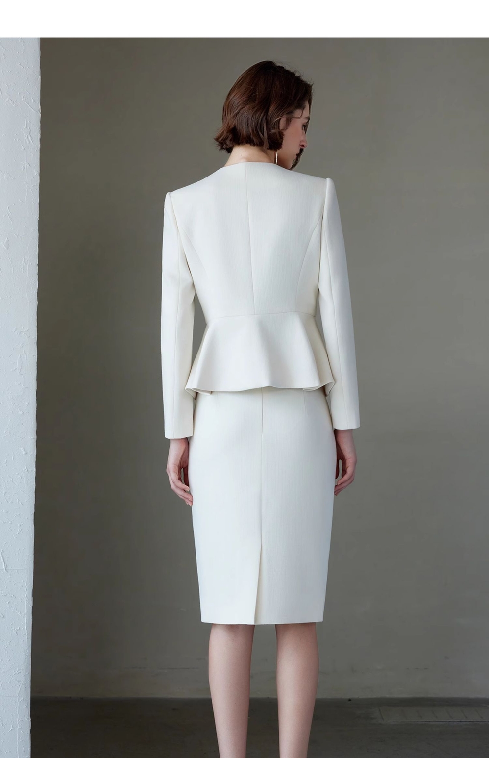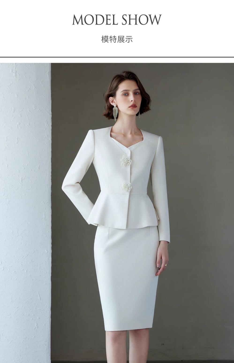 IWY/米白色长袖西装套裙设计感小众气质时尚干练总裁范职业两件套C2084+S2083