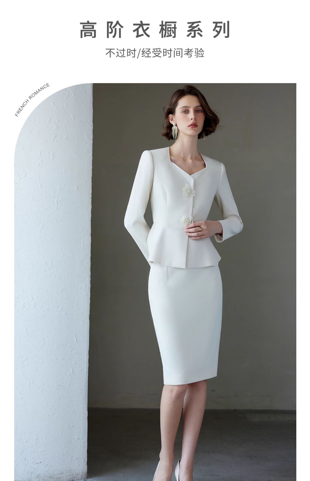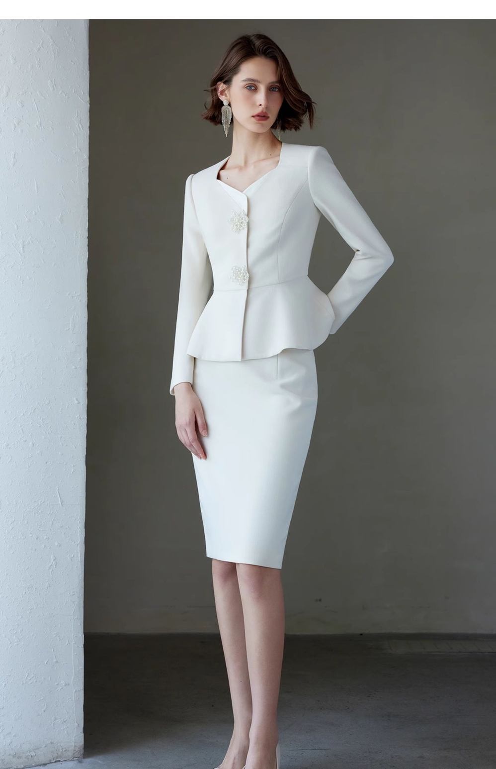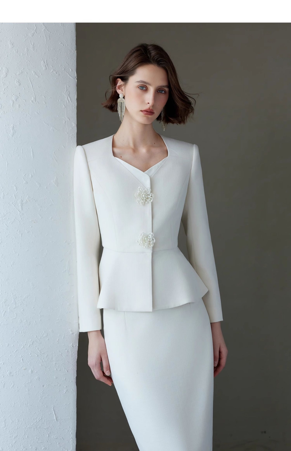 IWY/米白色长袖西装套裙设计感小众气质时尚干练总裁范职业两件套C2084+S2083
