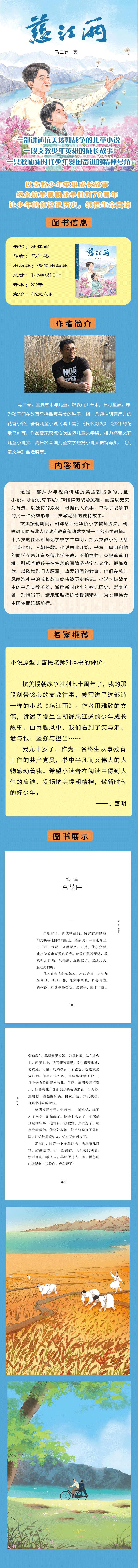 本书讲述了一位少年抗美援朝的故事,从十六岁到十八岁,慈江道这片土地像一座熔炉,把他从懵懂少年铸造成了钢铁战士。《慈江雨》里,好几位有血有肉的人物逝去了,有的惨烈,有的悲壮,还有的九死一生,活了下来,他们激荡着我们的心,让我们对生命的价值有了更深的理解。