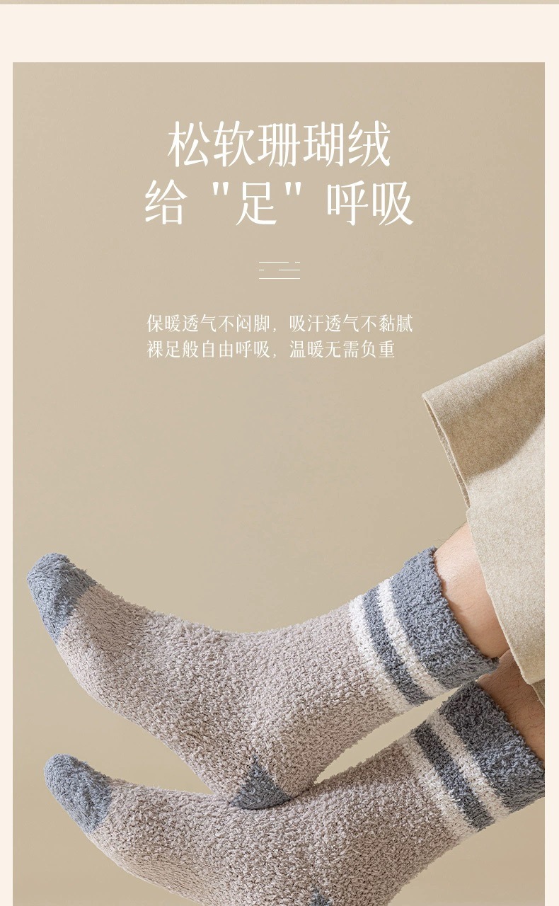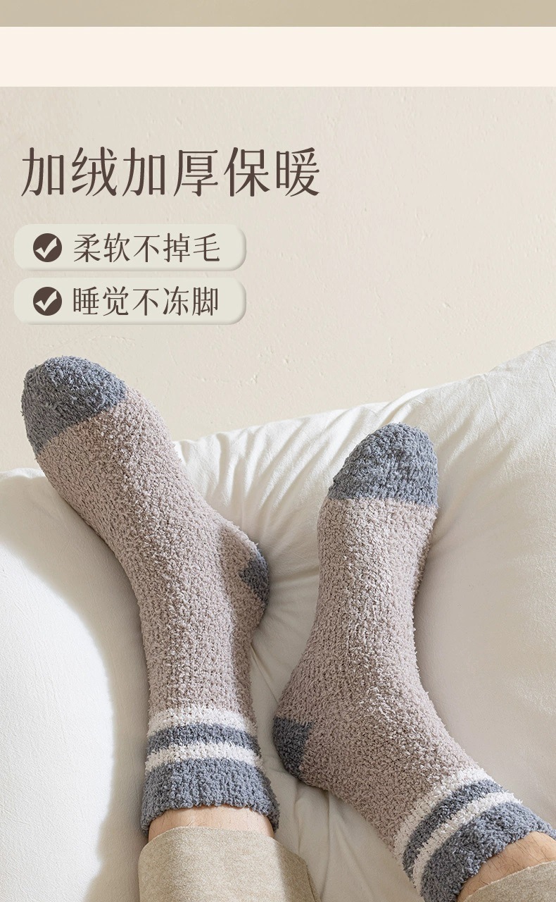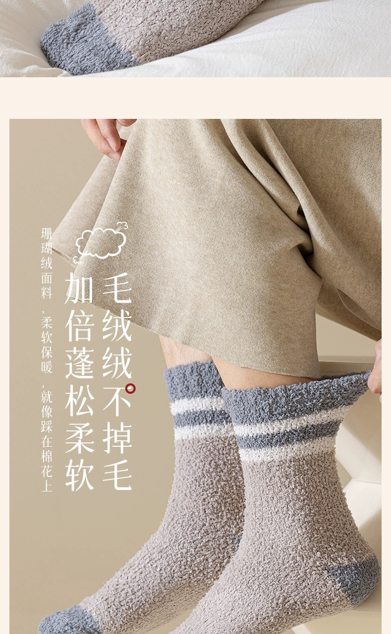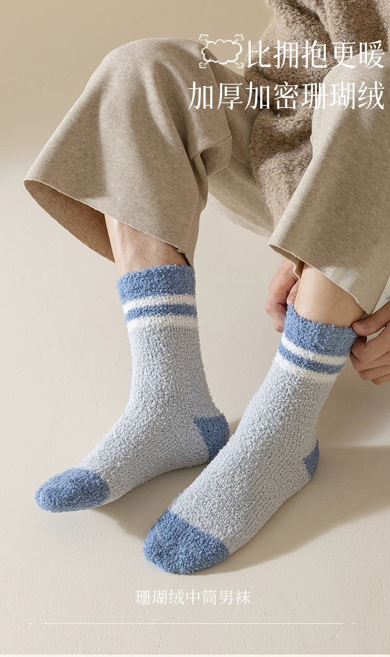 【告别寒冷!不再冻脚】珊瑚绒袜子男秋冬中筒袜加绒加厚地板袜男士撞色保暖家居睡眠长袜。ry