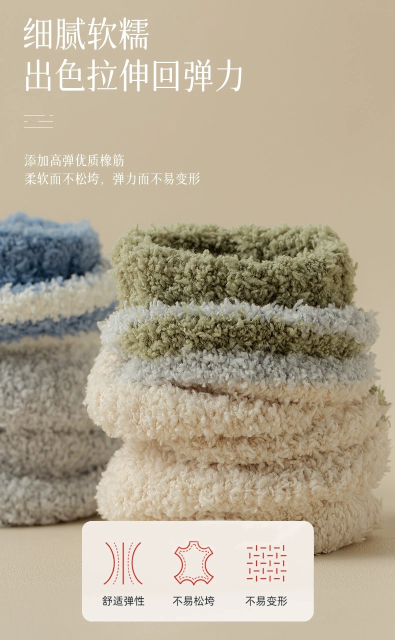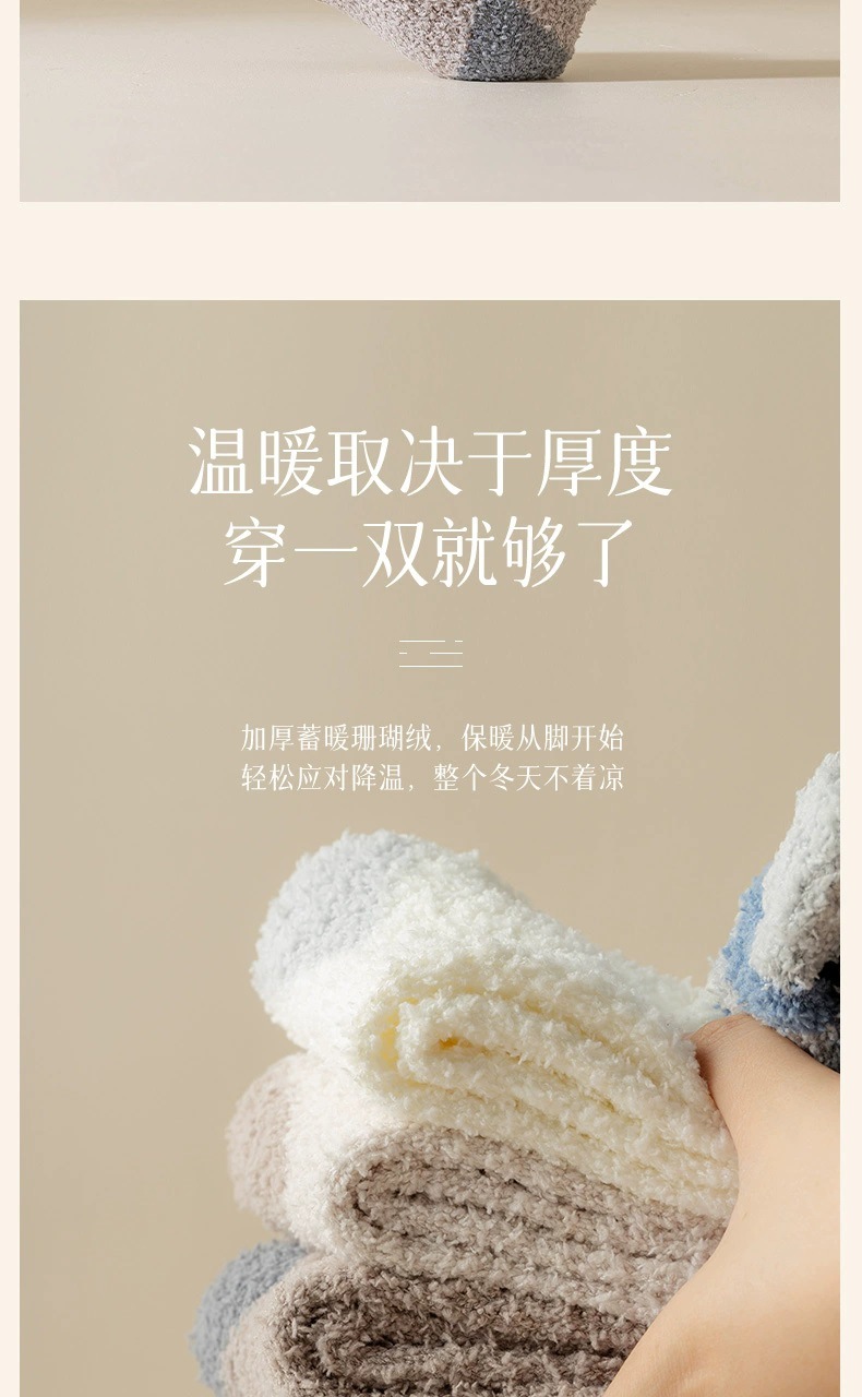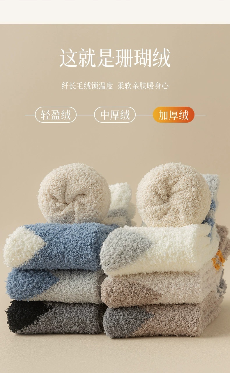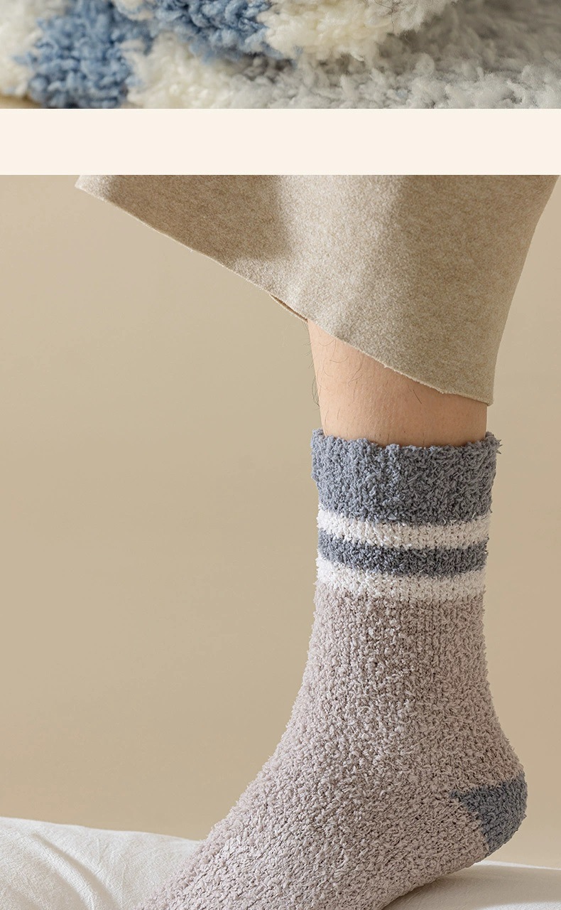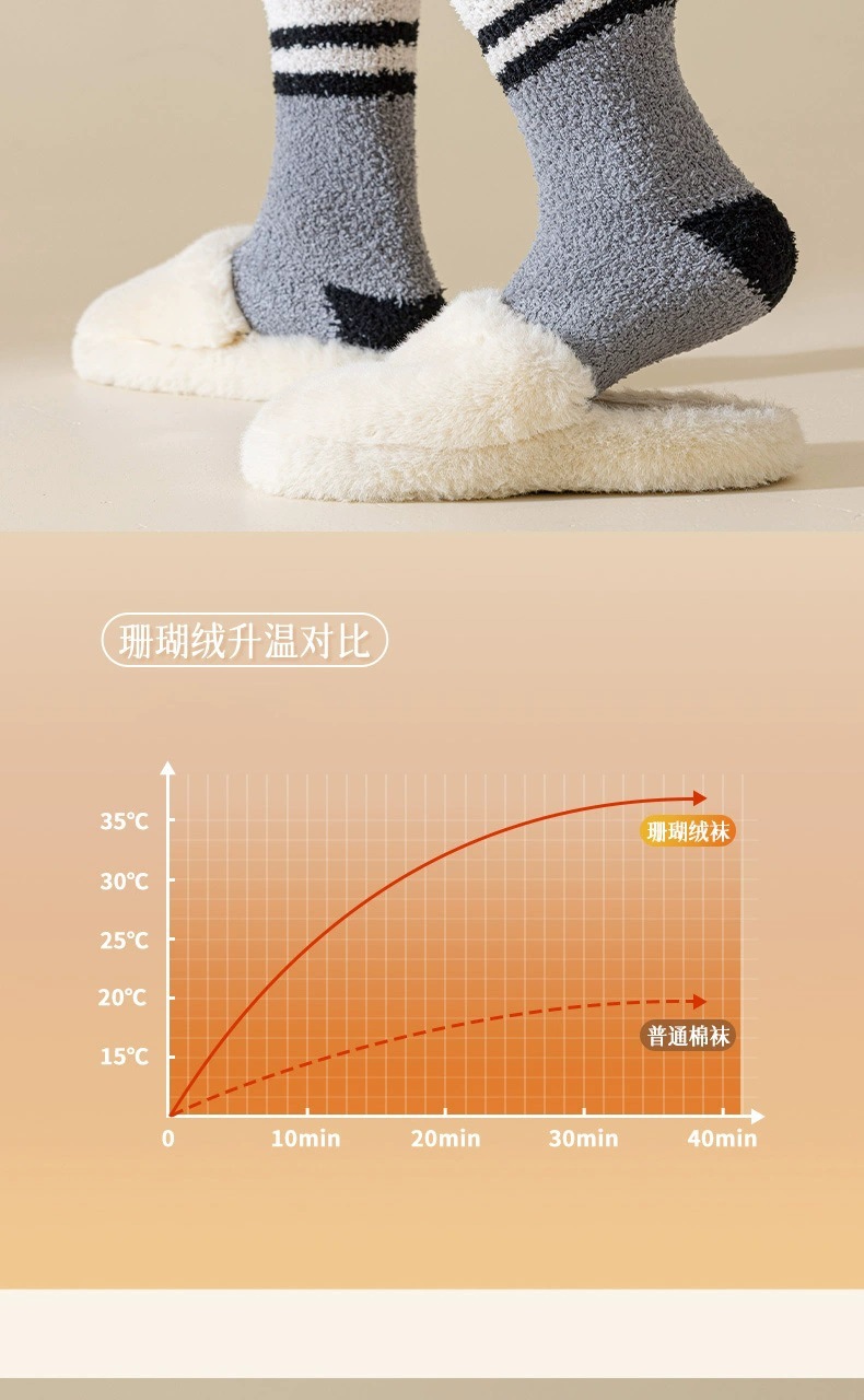 【告别寒冷!不再冻脚】珊瑚绒袜子男秋冬中筒袜加绒加厚地板袜男士撞色保暖家居睡眠长袜。ry