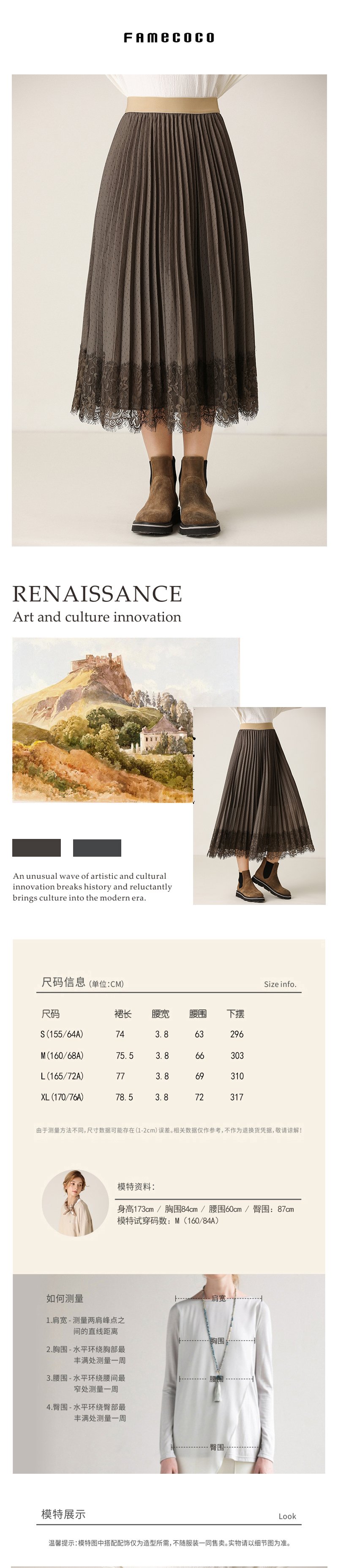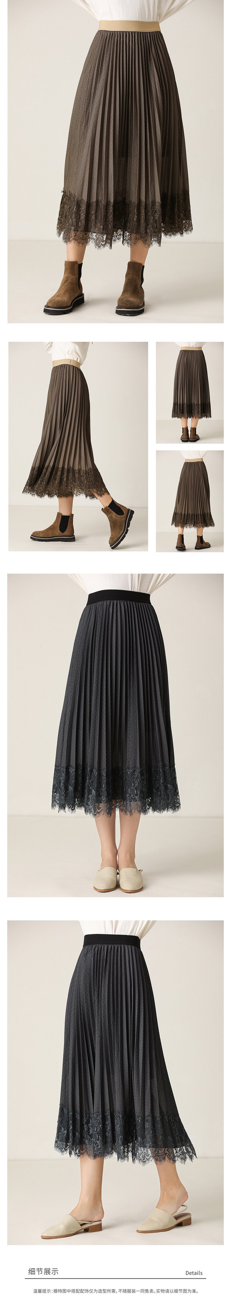 Famecoco范可儿波点半身裙蕾丝拼接百褶裙F201HA003