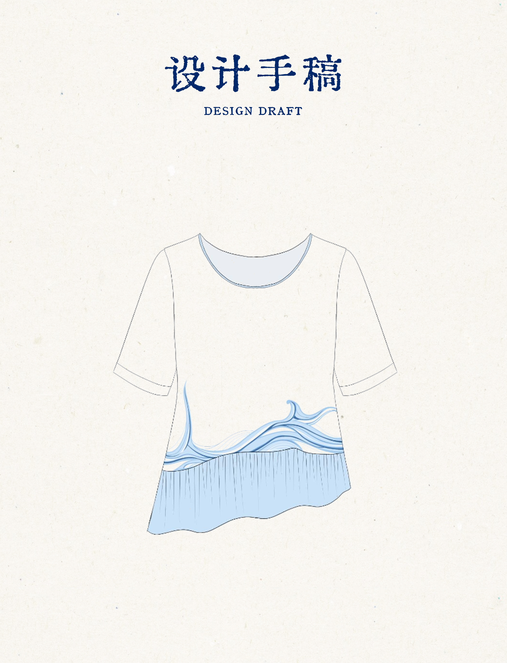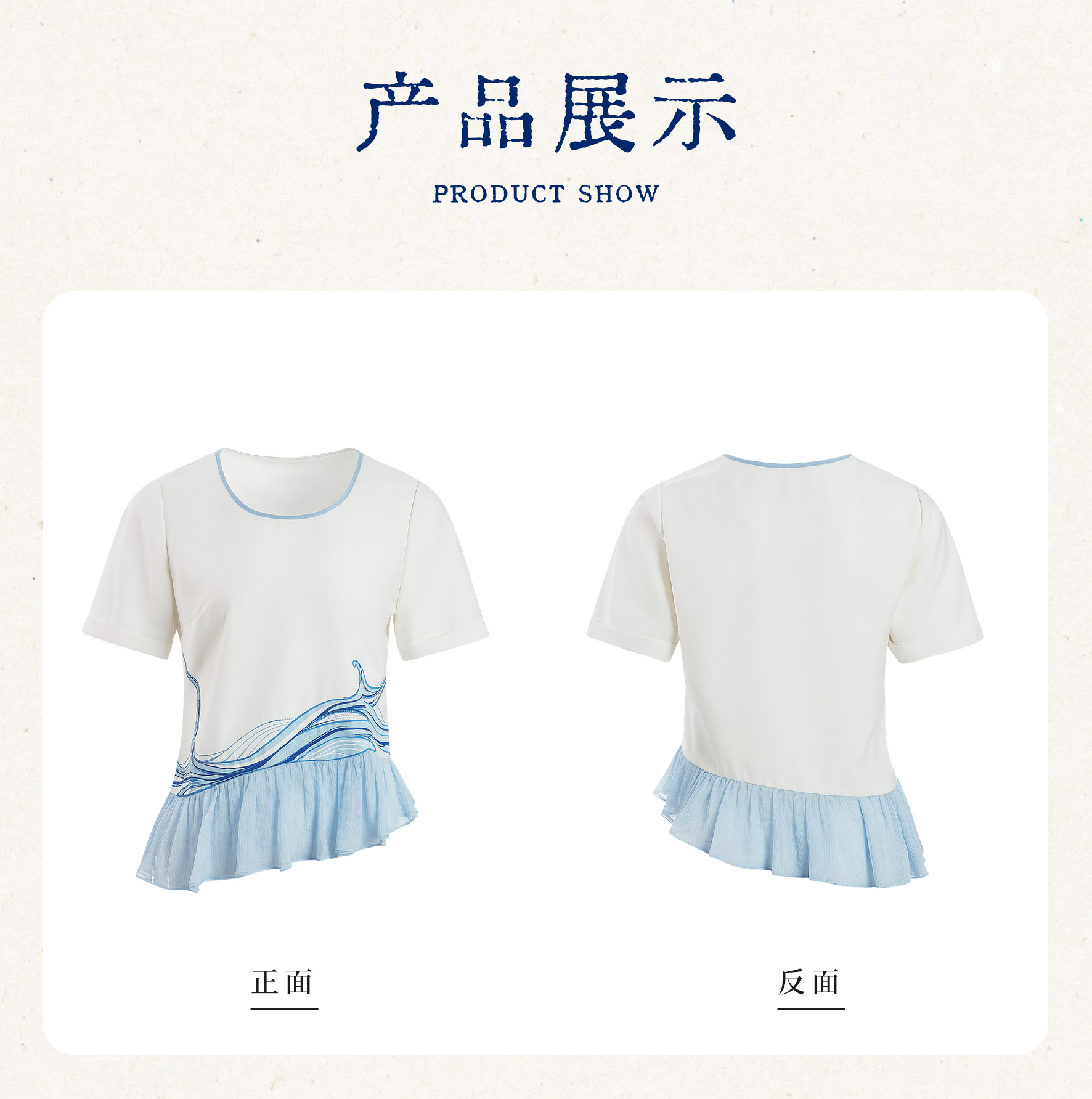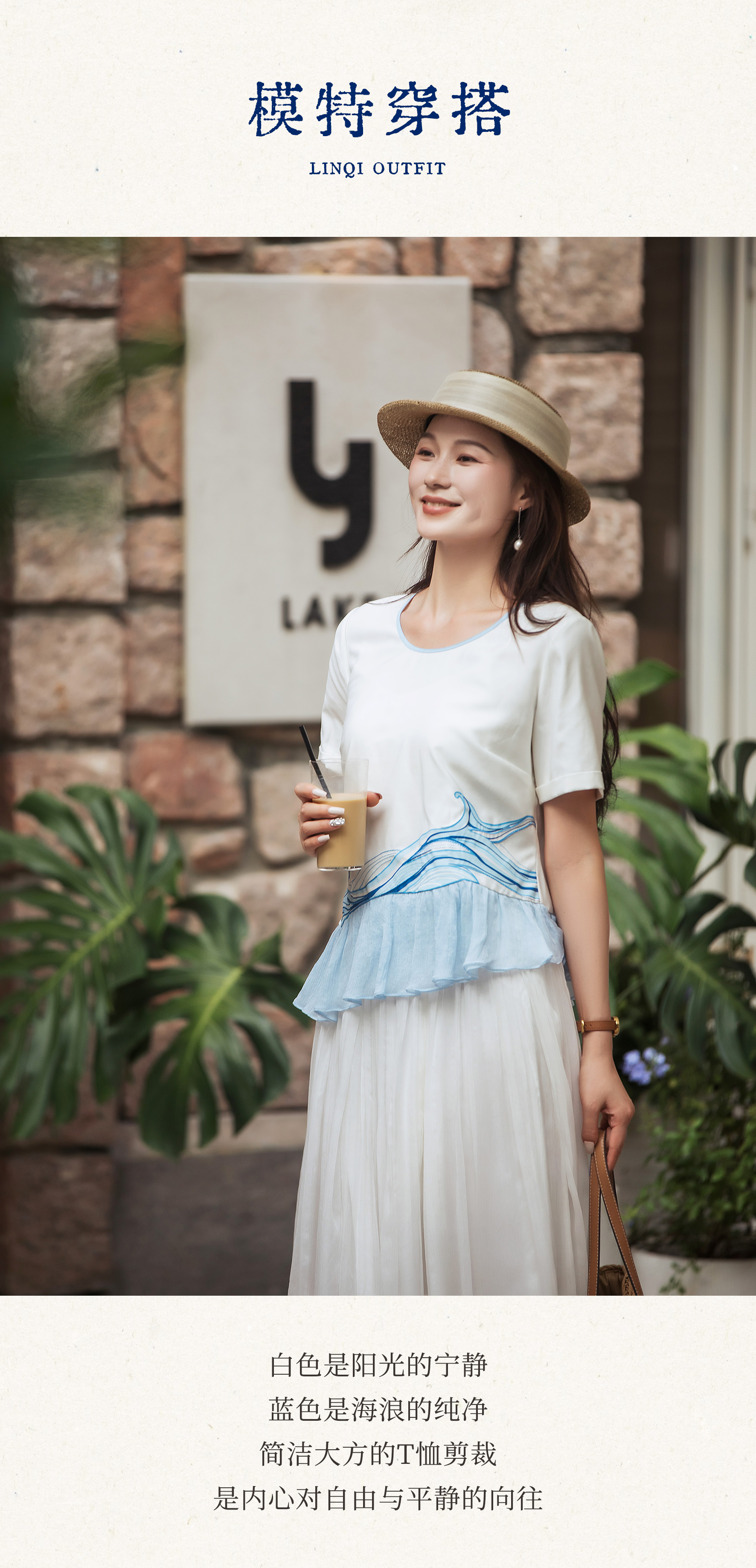 【林栖设计小店】(现货)【林栖推荐】蓝色海浪夏季新款白色T恤N1953213
