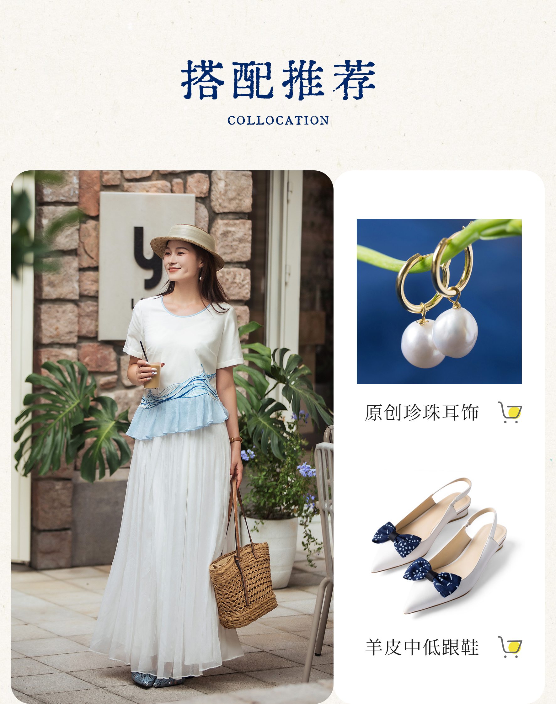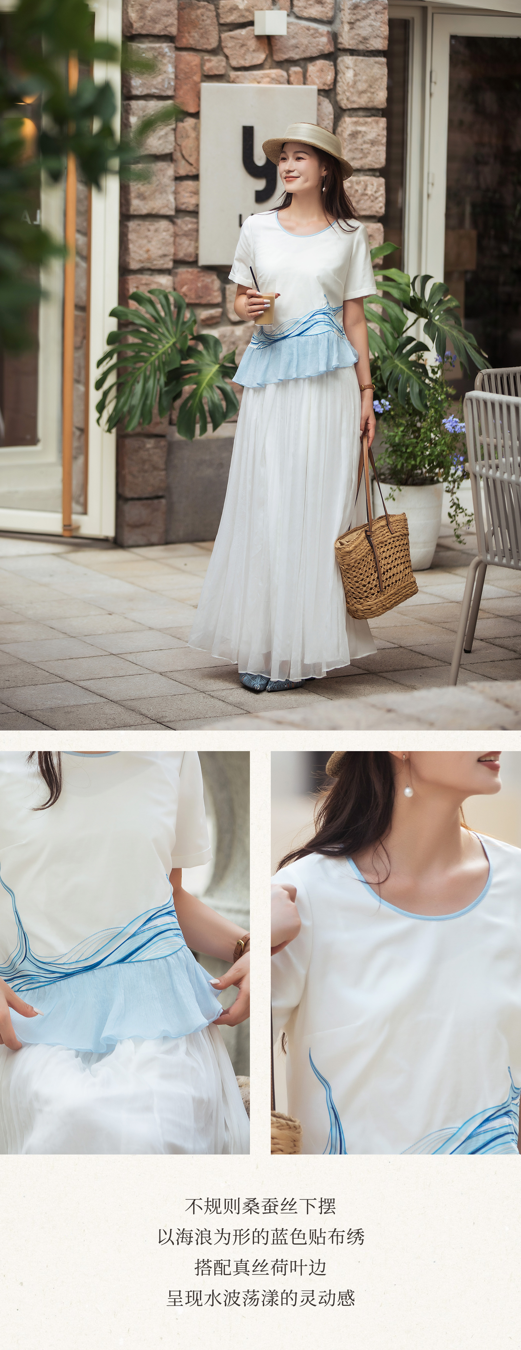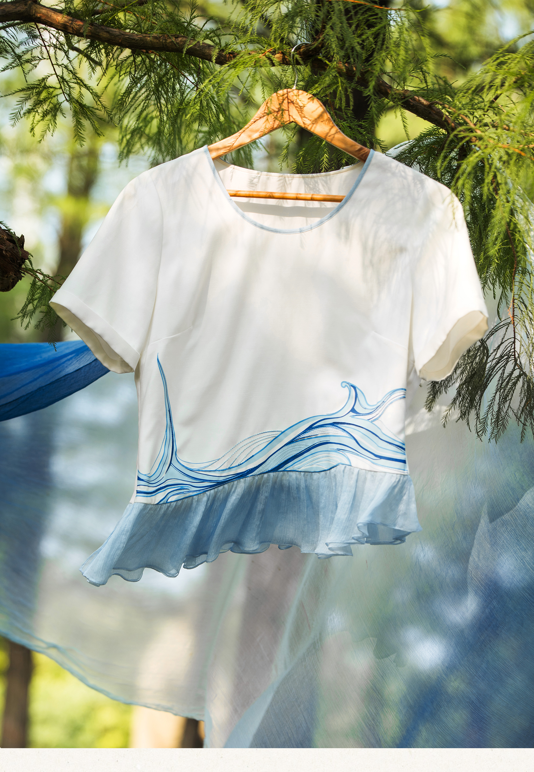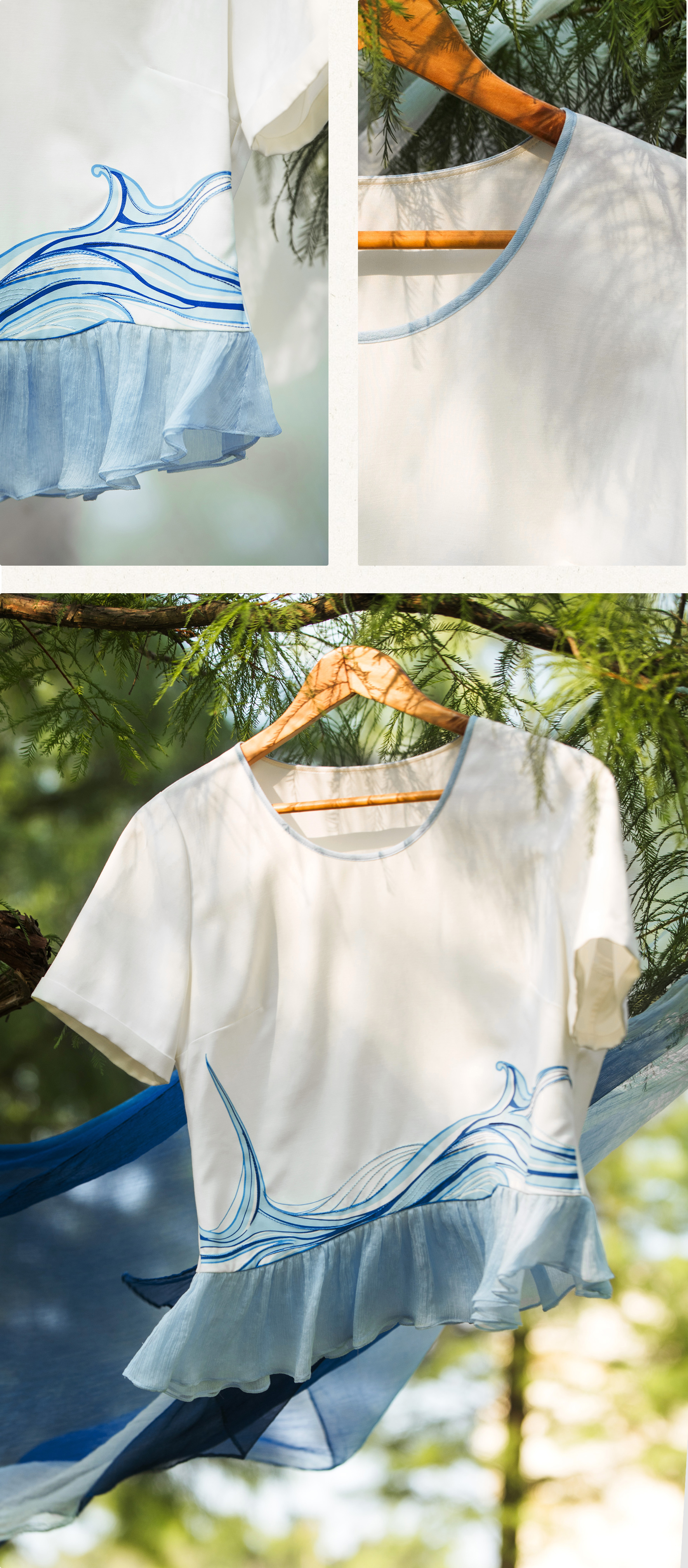 【林栖设计小店】(现货)【林栖推荐】蓝色海浪夏季新款白色T恤N1953213