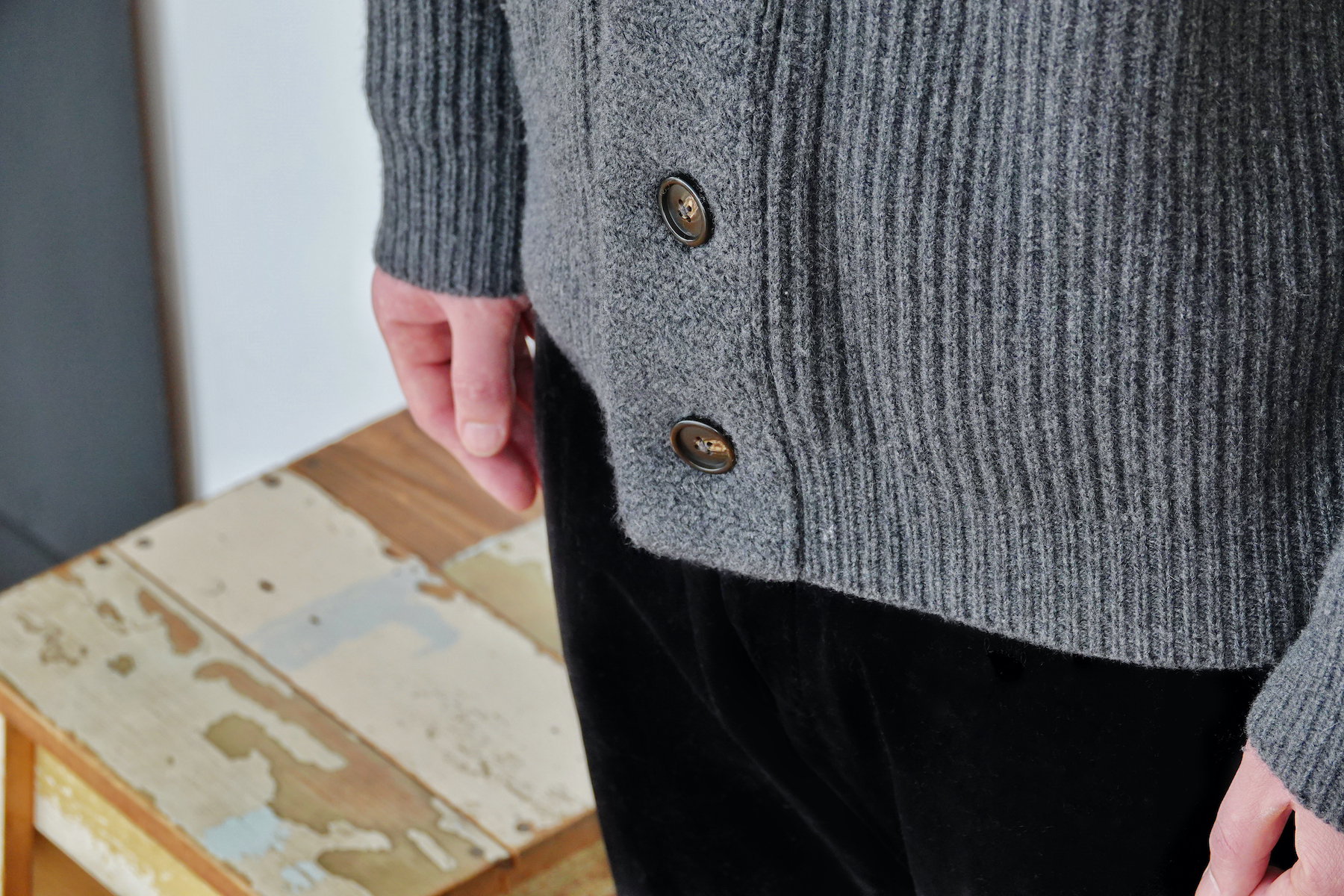 #1985 「BE GENTLE CARDIGAN 」 30% CASHMERE 70% WOOL 绅士青果领厚实开衫
