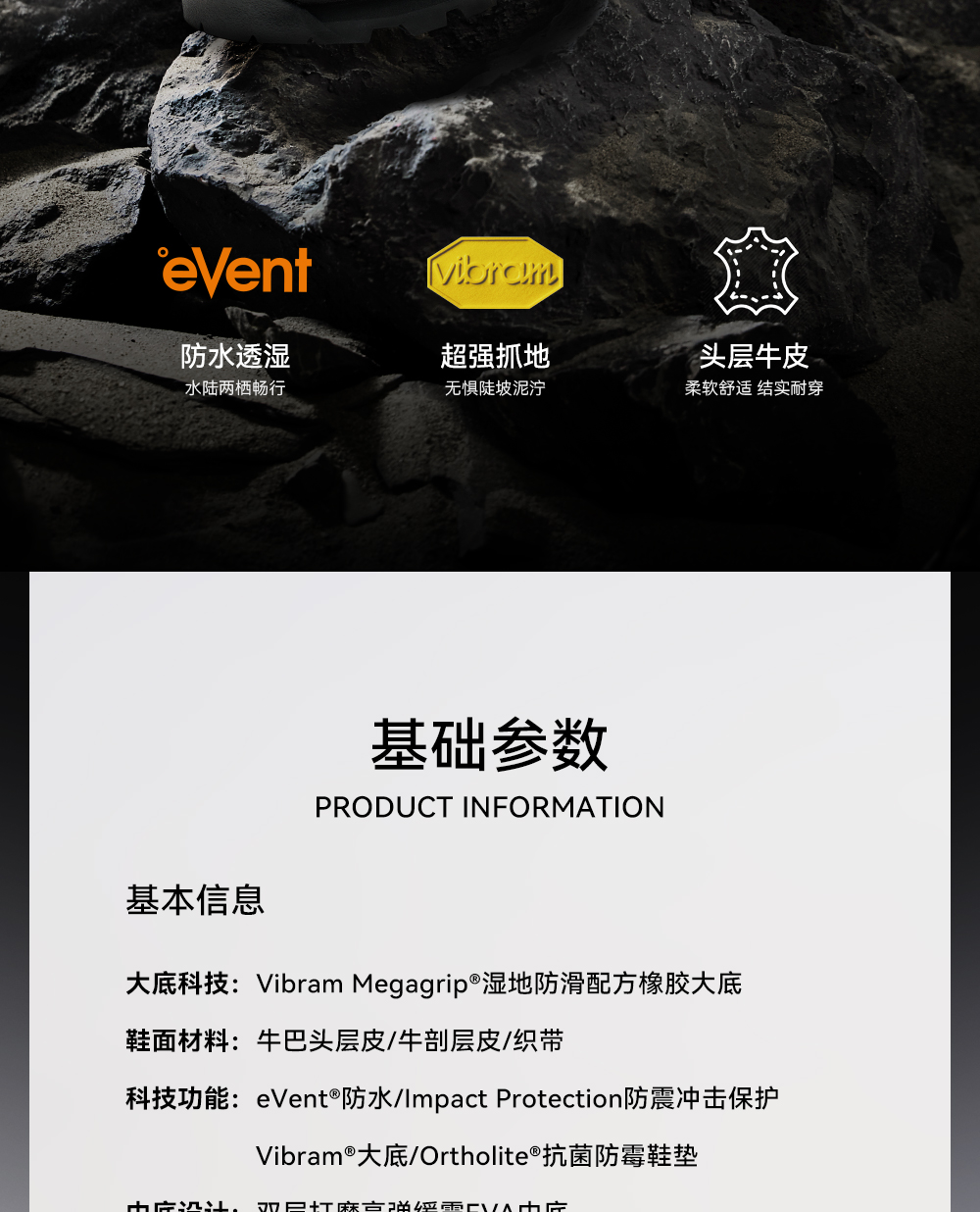 【MT-无畏】伯希和登山靴男女款Vibram防滑eVent防水户外徒步鞋