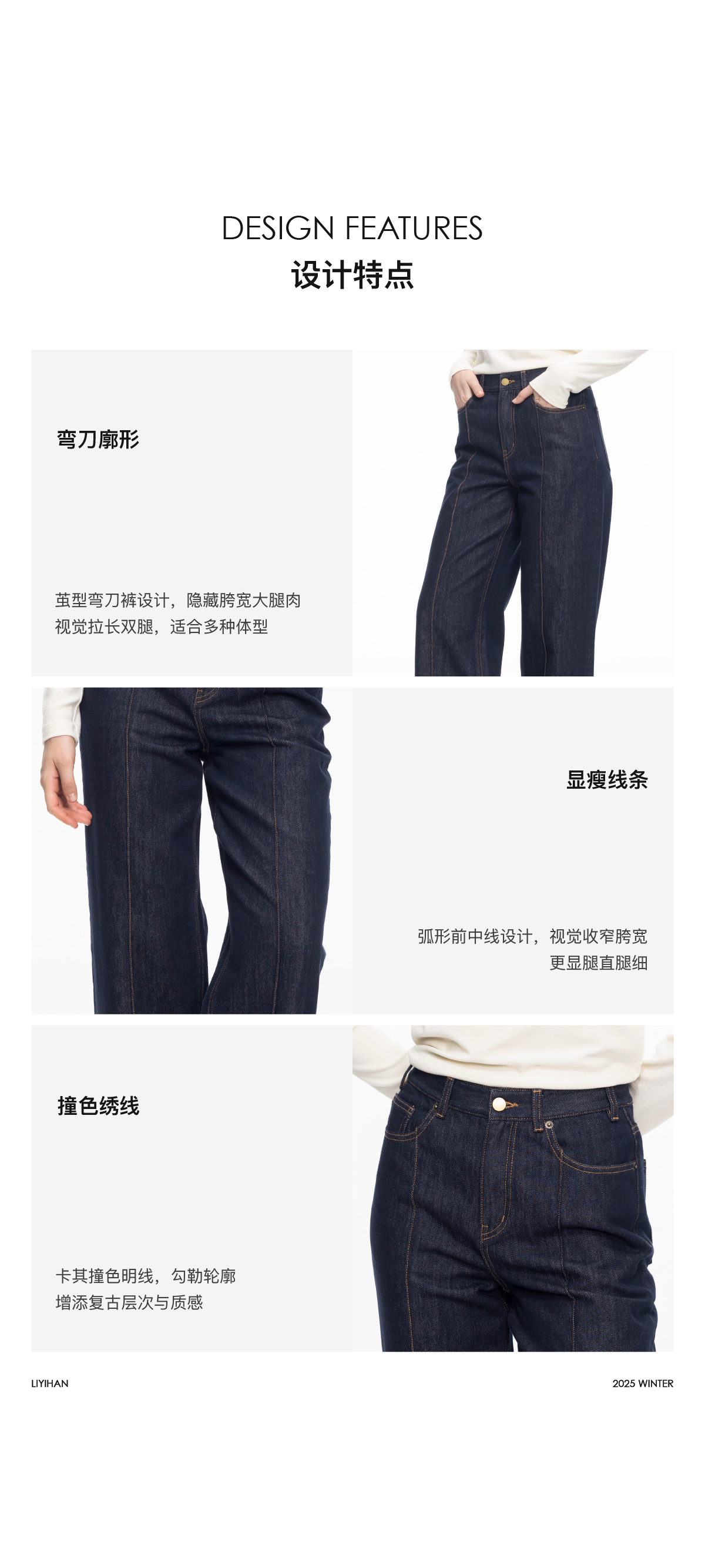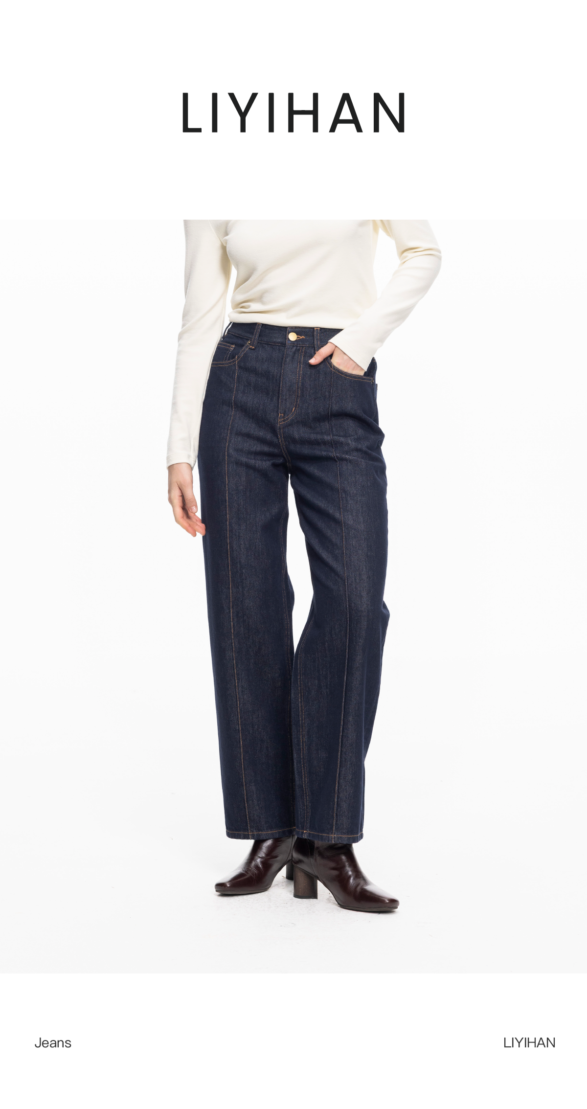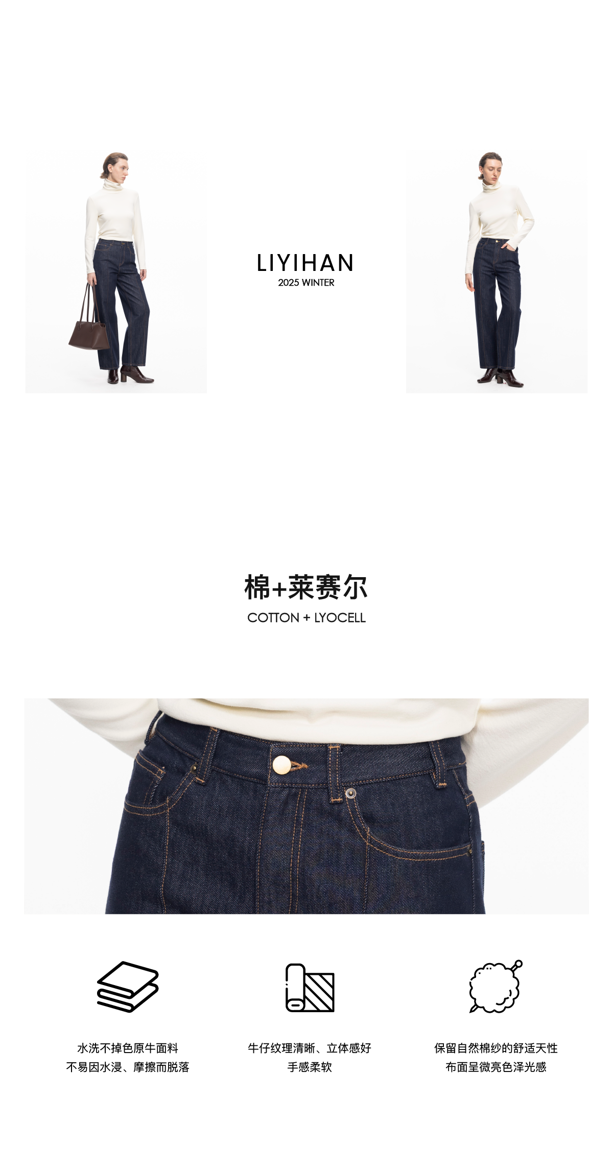 LIYIHAN 2025秋冬季新款通勤棉质牛仔裤女复古直筒裤子小众设计感