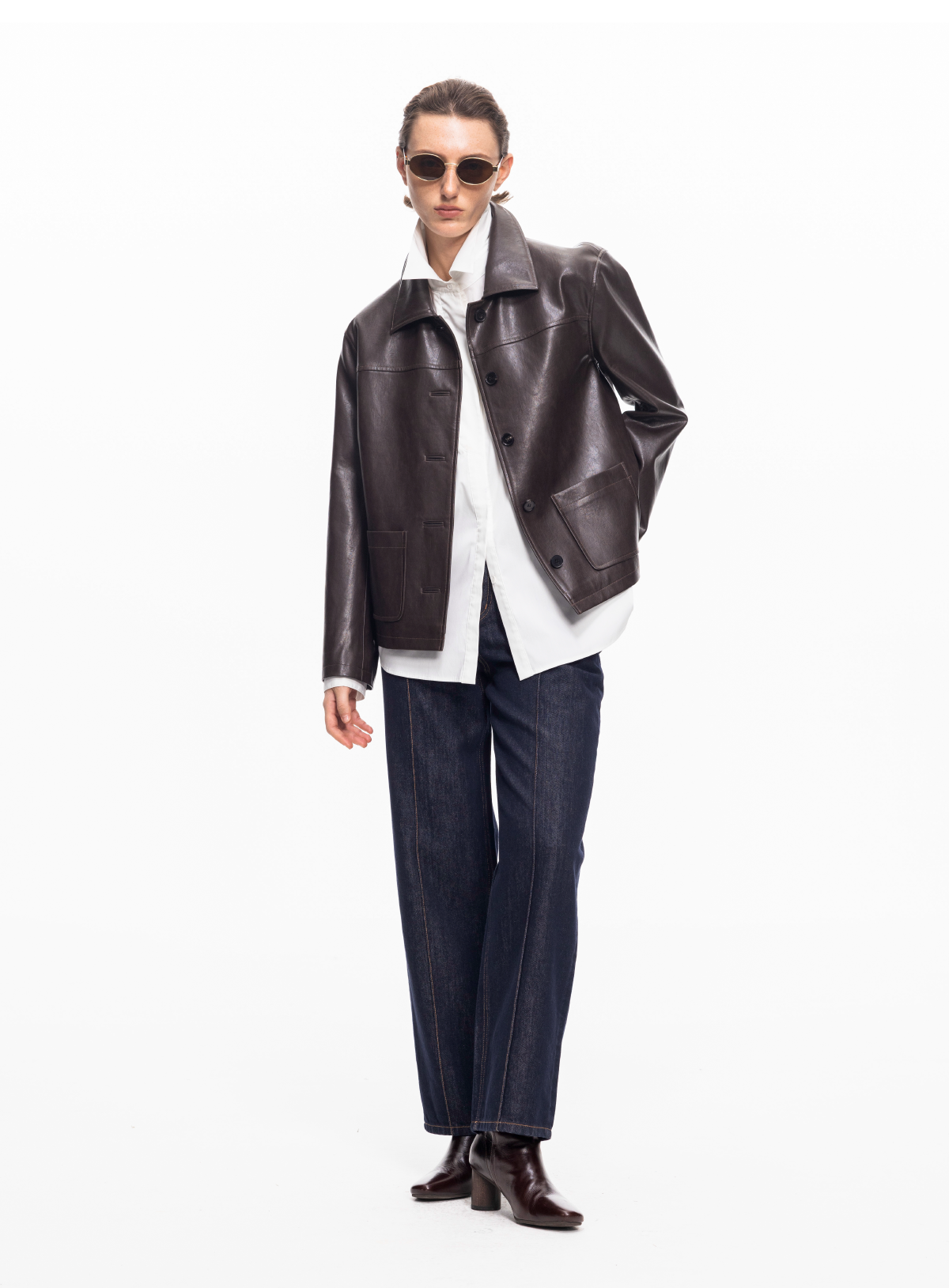 LIYIHAN 2025秋冬新款复古摩登咖色皮衣外套女短款夹克小众设计感
