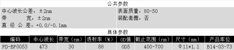 BP473/30k OD5 @400-700 T>88% φ11*1.1带通滤光片