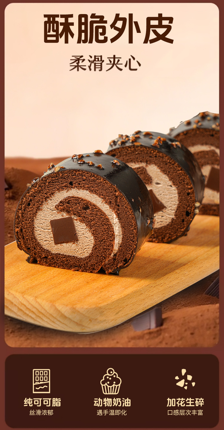 【浓郁丝滑❗️脆皮生巧蛋糕卷】甄选优质纯脂巧克力熬制生巧夹心,咬开后脆皮碎裂,生巧夹心与奶油层瞬间融合,层次分明,巧克力奶油蛋糕顺丰包邮冷冻甜品西式糕点蛋糕卷QQ