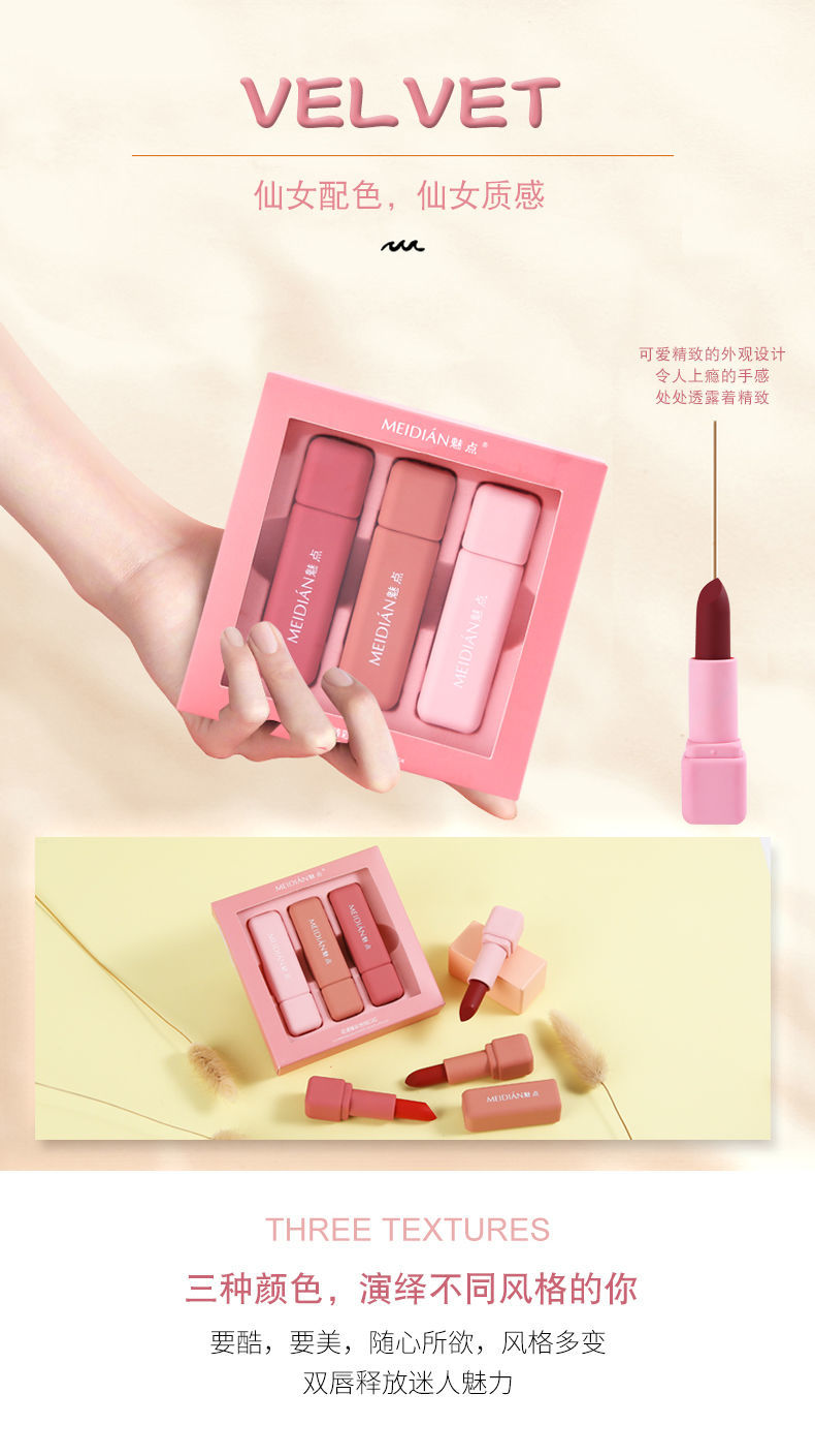 【抖音同款三支装】花样雾面丝绒口红套装女学生款哑光不掉色不沾杯唇釉
