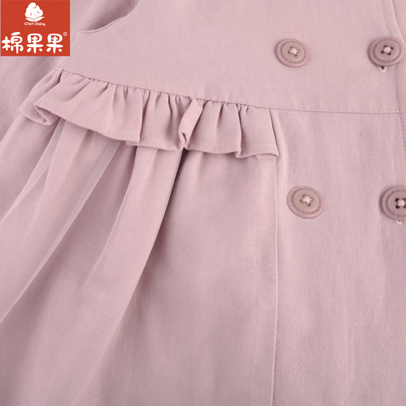 棉果果专柜同款春季新品女童梭织斜纹翻领网纱风衣外套M122130324005