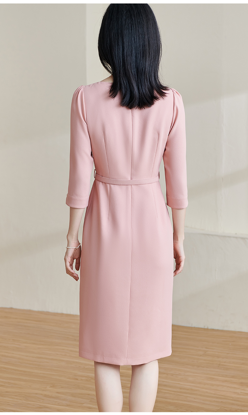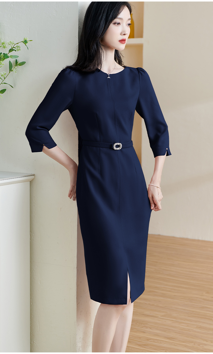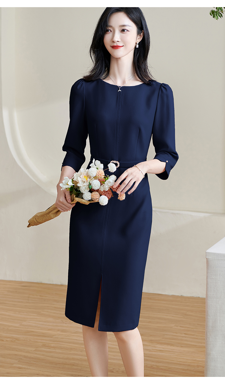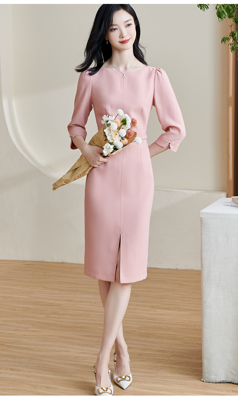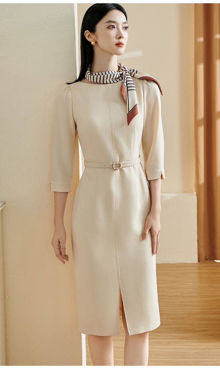 米思阳2026春新款温柔气质中长裙一字领开叉系带显瘦连衣裙2254