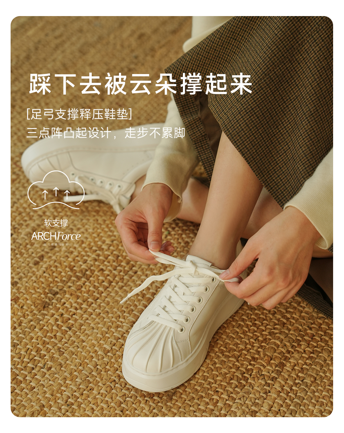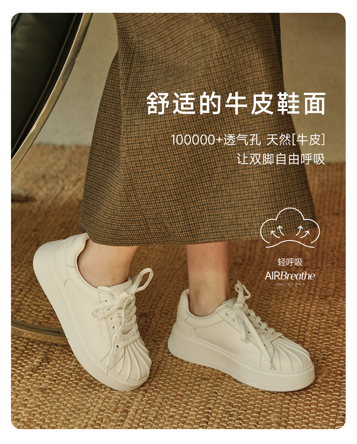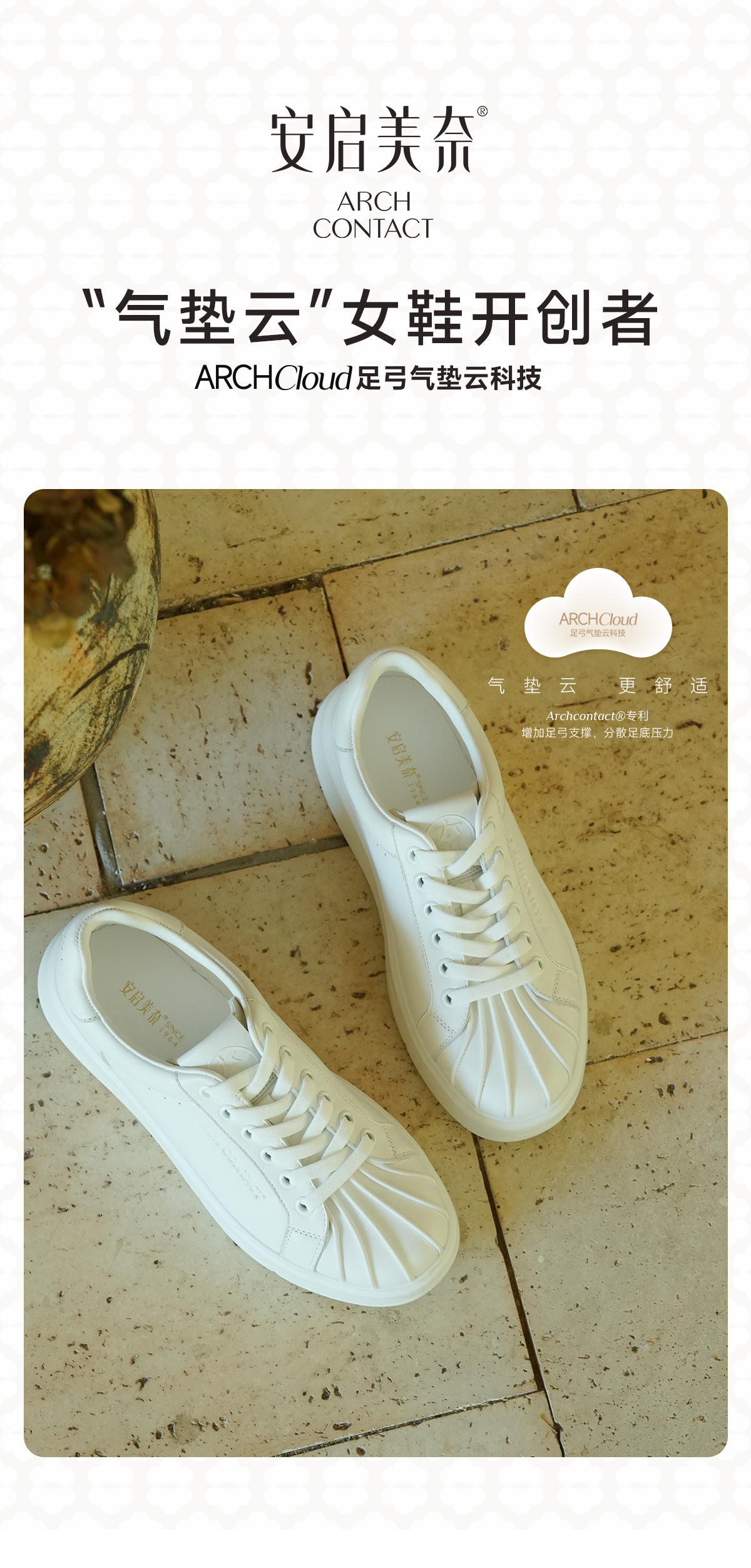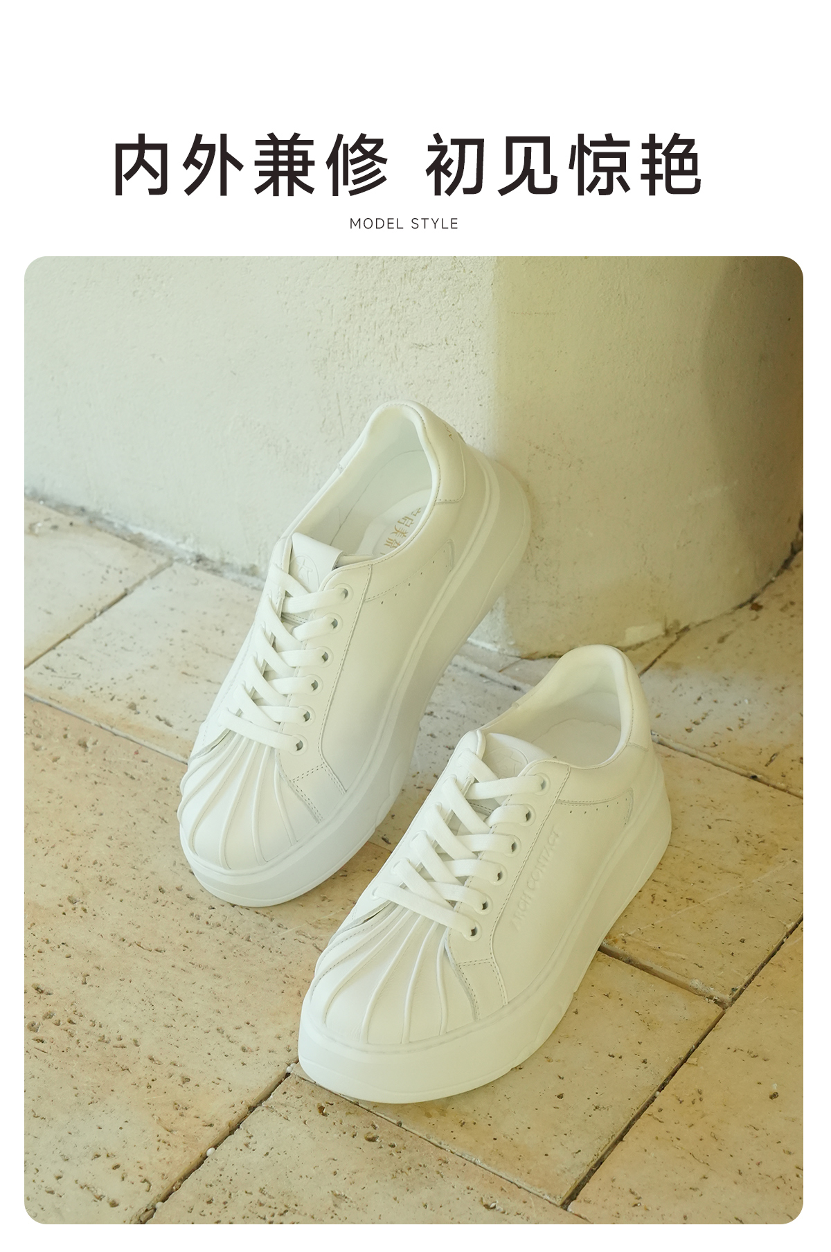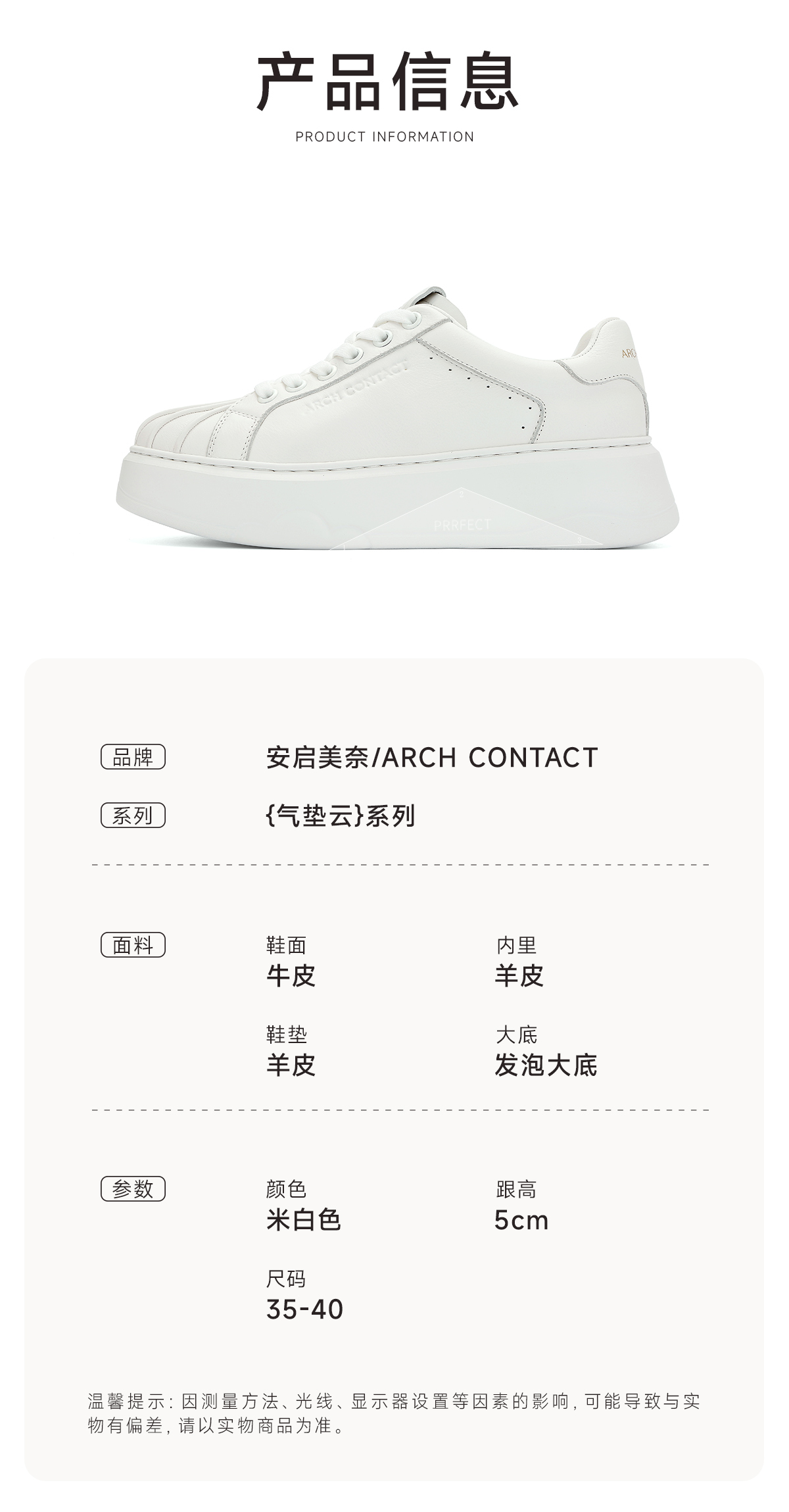 ARCHCONTACT安启美奈气垫云牛皮厚底奶白贝壳头板鞋小白鞋53051
